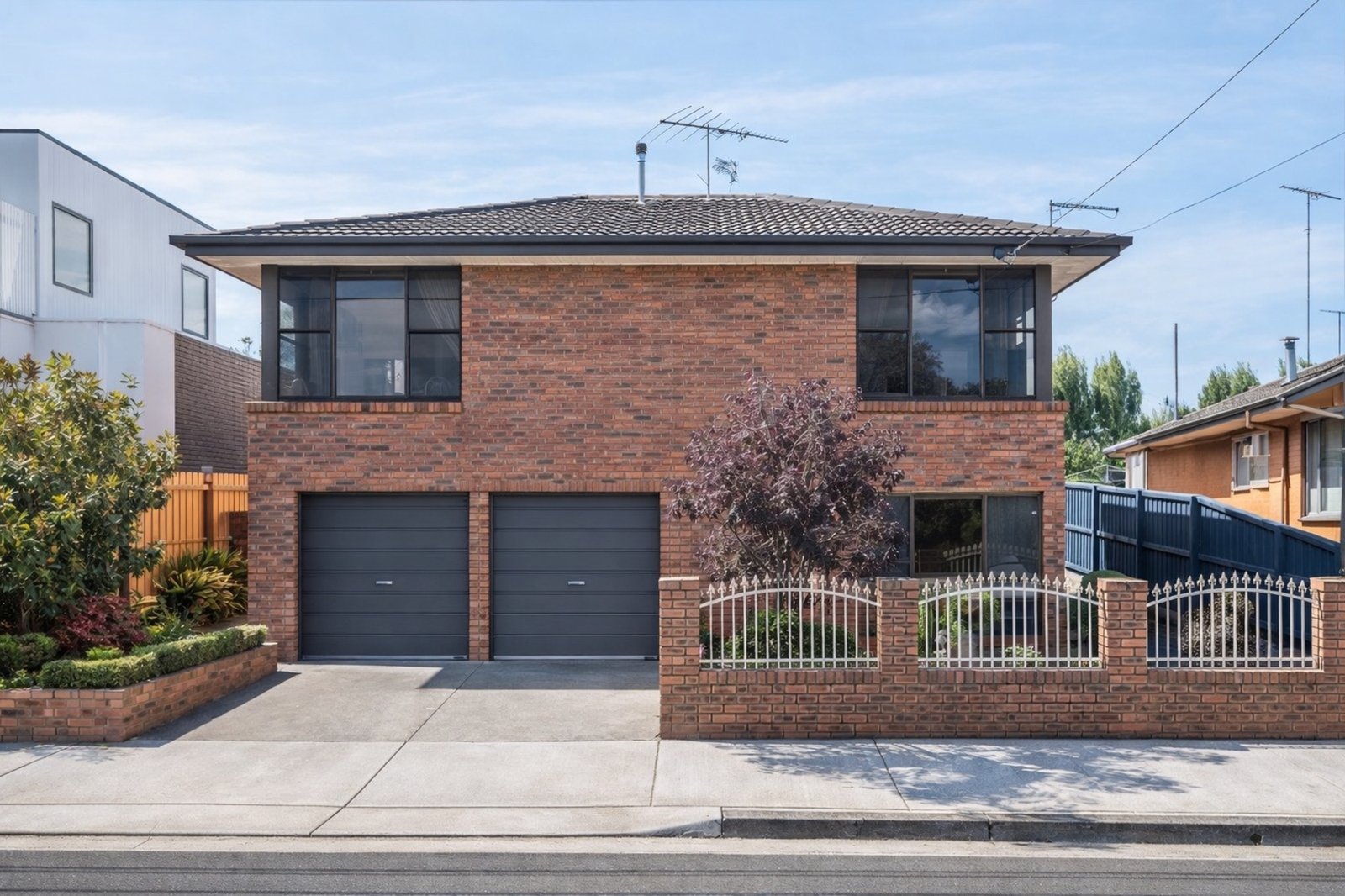 On entry to the home, a central staircase ascends to the main living area revealing a spacious open plan lounge and dining room, capturing a magnificent, elevated outlook to the park and across to the shimmering bay. The adjoining kitchen is well-positioned for everyday living and easy entertaining, with a servery window to the dining space and breakfast bar seating. Gas heating, split system heating and cooling, plus a ceiling fan cater for comfortable living all year round. Downstairs, a generous second living area offers a quiet retreat, or a great space for the kids to hang out.