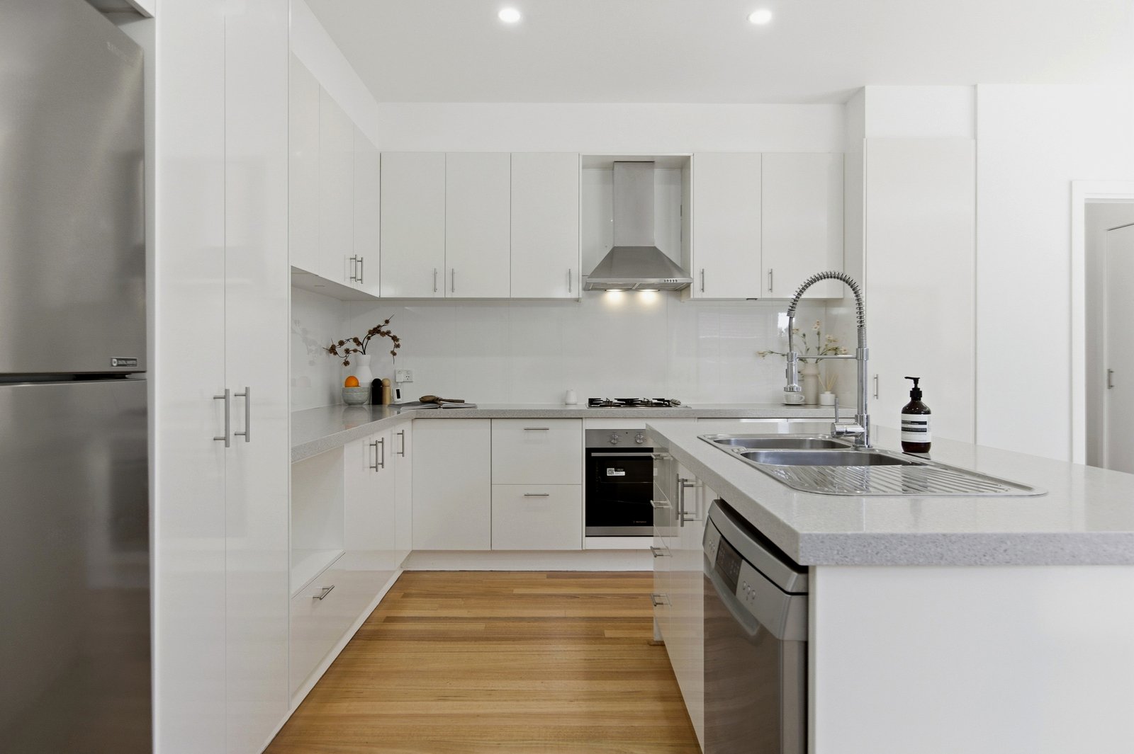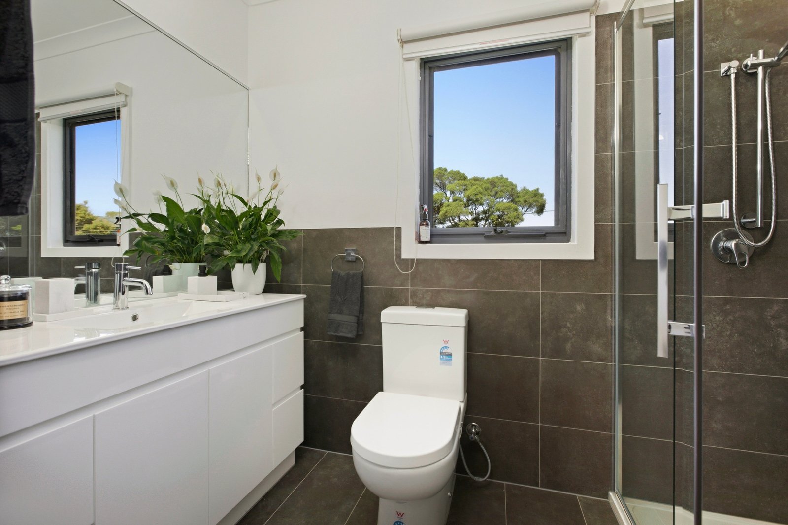 Stepping up with a peaceful, private bedroom level with a generous main bedroom suite encompassing walk-in robe and a stylish ensuite, this polished home is upgraded where it counts with composite-stone benchtops for the quality stainless-steel appliance kitchen and sparkling new designer finishes (including more stone benchtops and a freestanding-bath) for the glamorous bathroom and ensuite.