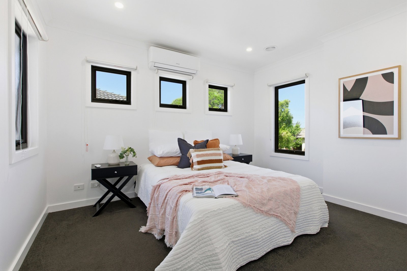 Optioned up with exceptional storage including built-in and walk-in robes, and sized up with a huge ground-floor powder-room and family-sized laundry, this centrally heated and cooled home features additional reverse-cycle split-systems upstairs and down, authentic Australian hardwood floors alongside plush carpet, and block-out blinds supplemented by security (and climate-controlling) roller-shutters.