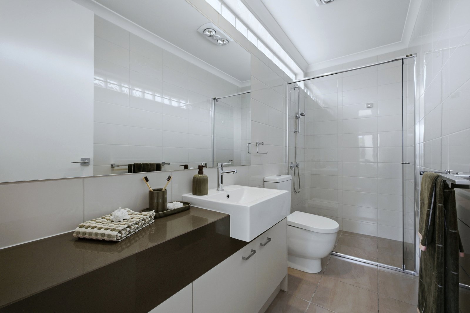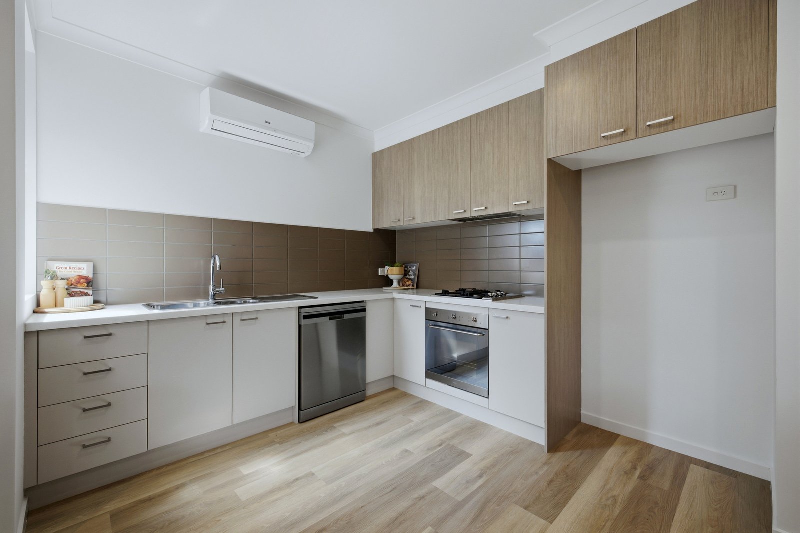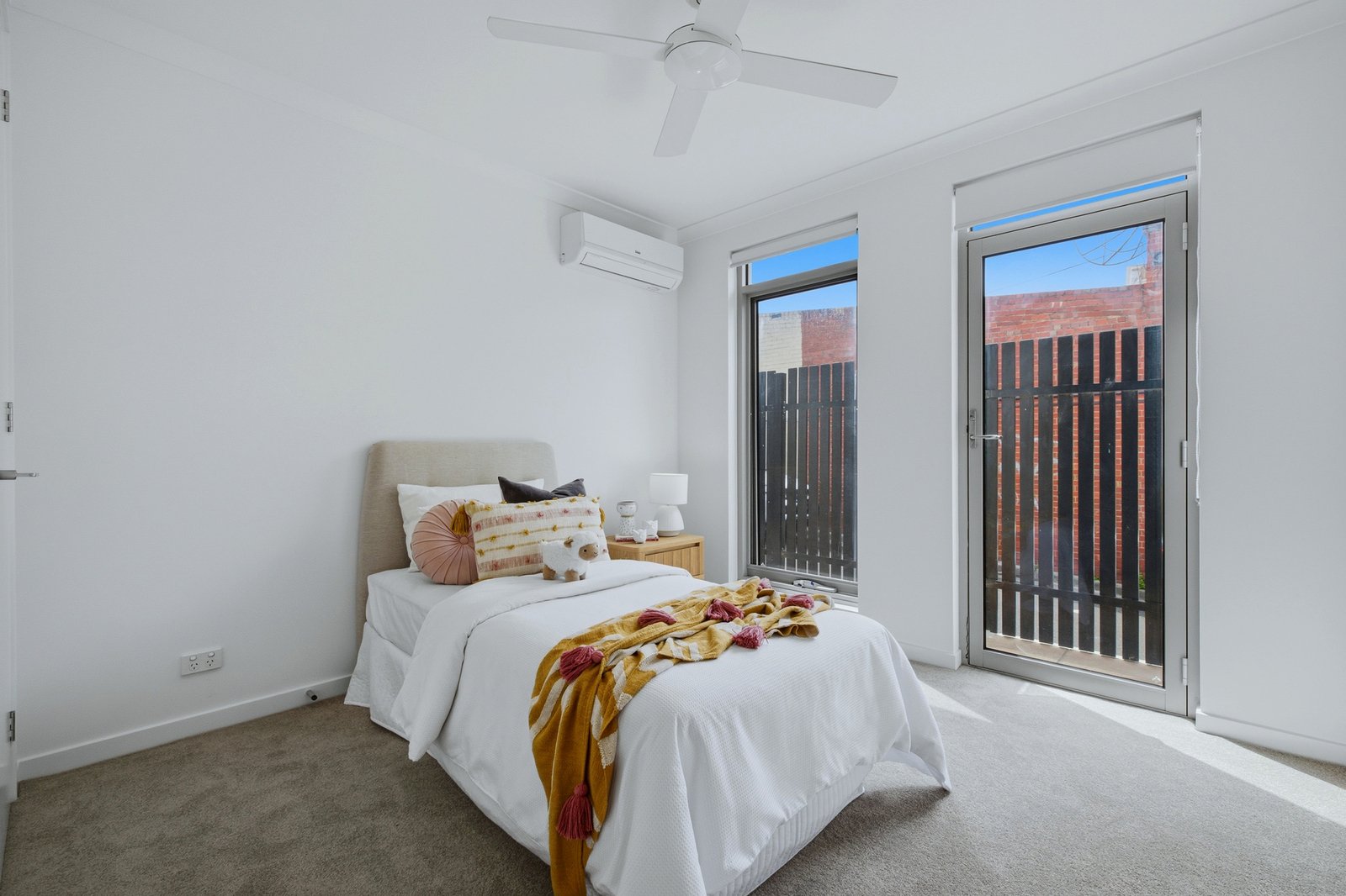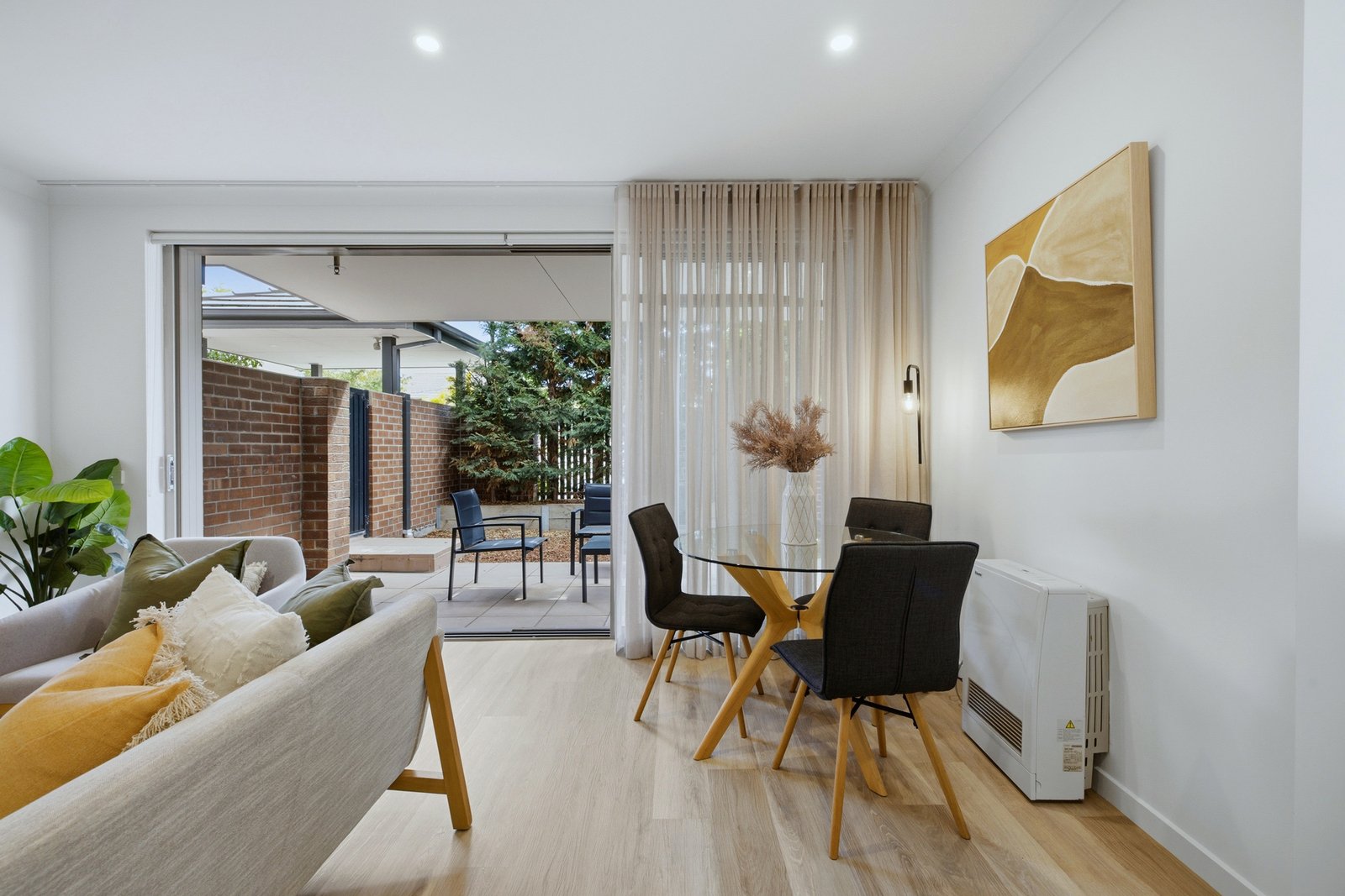 Styled with Smeg appliances for the streamlined kitchen and floor-to-ceiling tiling for the private ensuite and well-placed main bathroom, this high-quality home is big on designer finishes with sleek stone benchtops (even for the well-designed laundry area), Scandi-style Oak floors plus warm bedroom carpets, and quality window furnishings including dual day-night blinds, plus a full stretch of roof-hung sheer curtains (wall-to-wall and top-to-bottom) for the living zone.