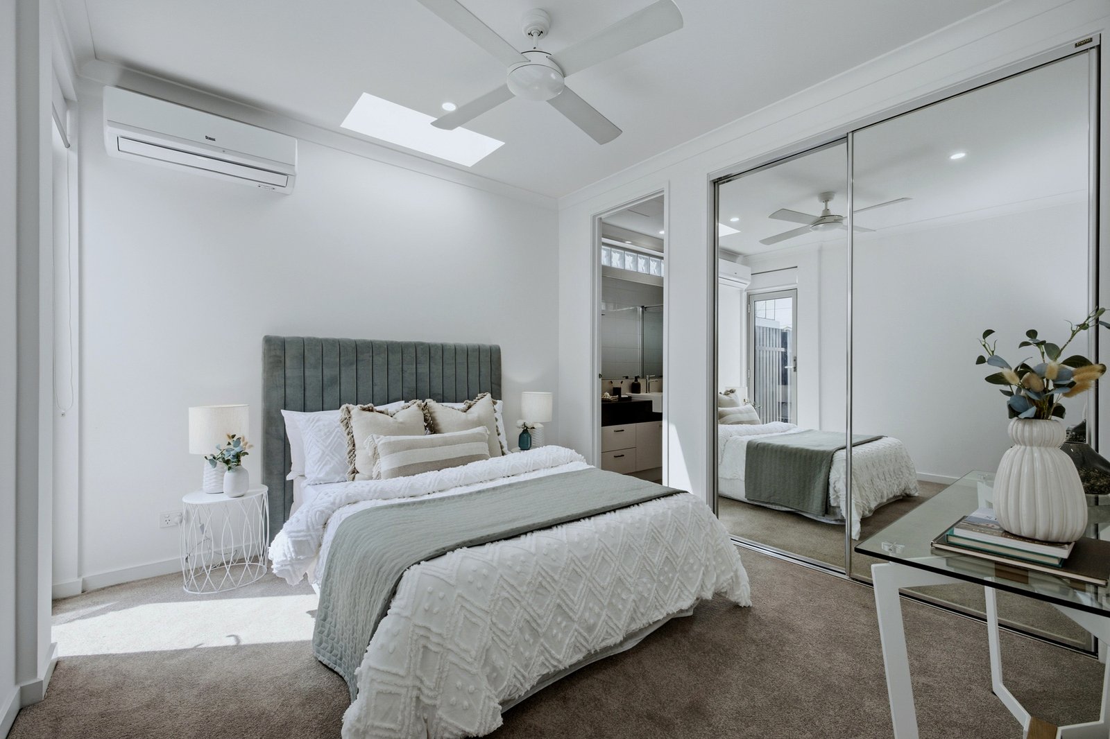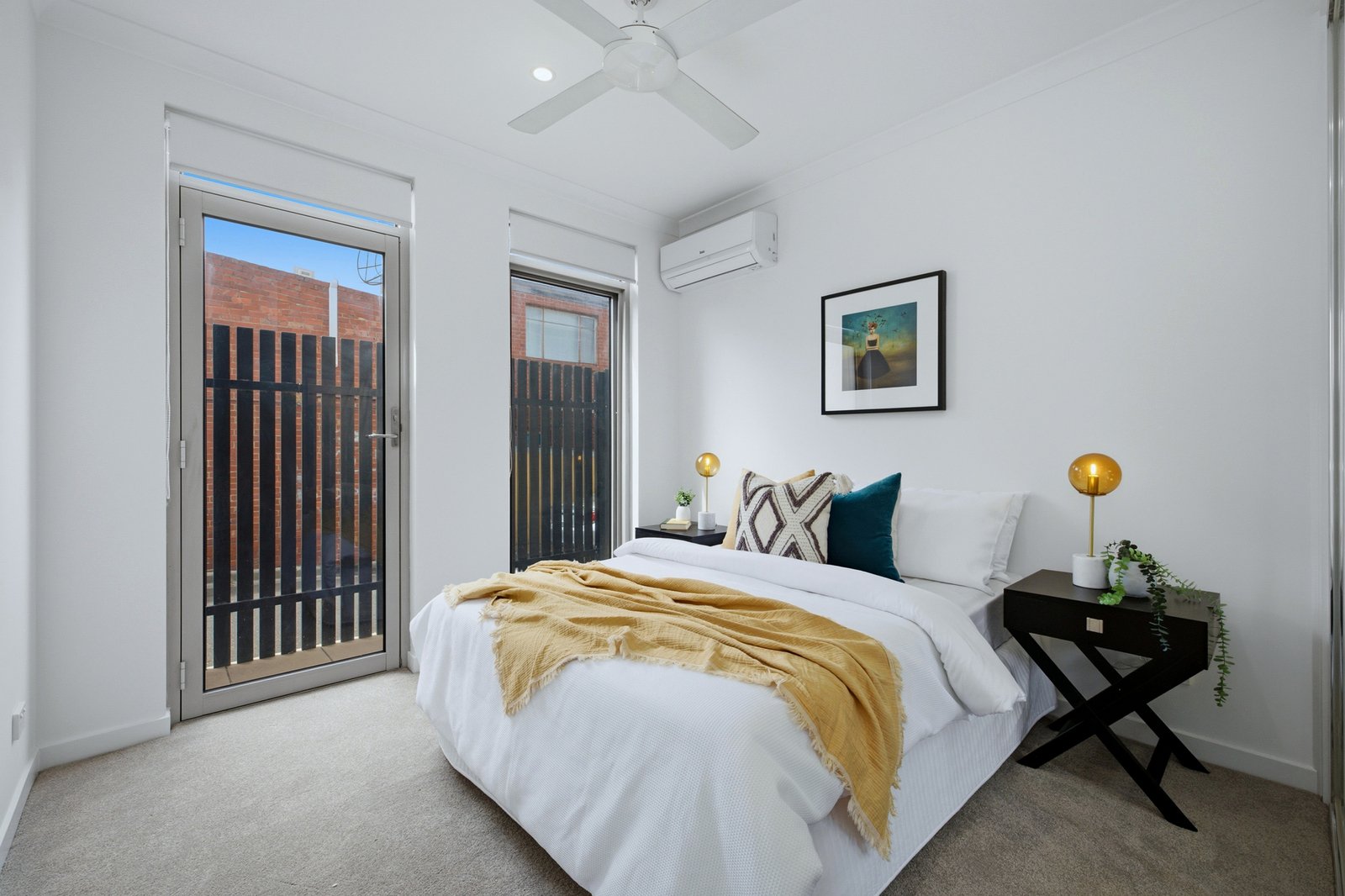 Fully climate-controlled by individual reverse-cycle units and designer ceiling-fans for every room, this impressive apartment is optioned up with video-intercom for peace of mind, secure courtyard access for added ease, and rear-access two-car garaging for added security.