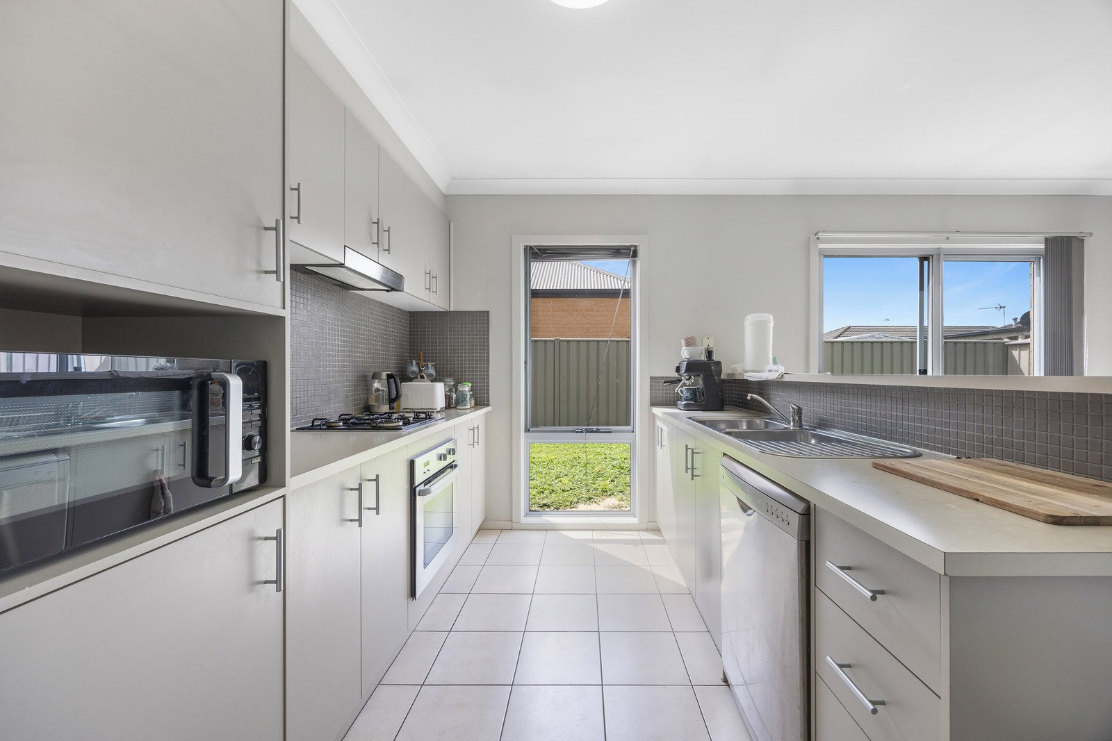 - Kitchen features electric oven, gas cooktop and dishwasher