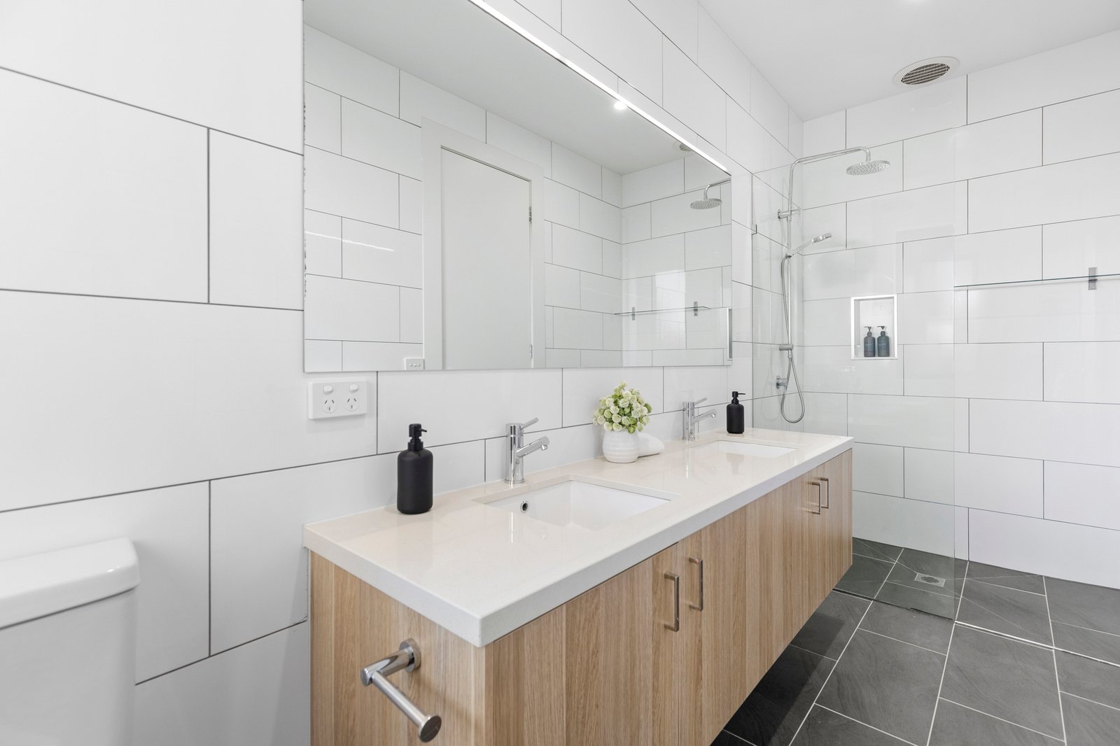 Showcasing refined finishes throughout, including Australian hardwood floors, fully tiled bathrooms with dual-vanity ensuite, individual reverse-cycle air conditioning and a secure alarm system, the home also provides at least two car spaces including an auto garage. Landscaped gardens, lawned areas and multiple paved and decked zones enhance the family-friendly appeal.