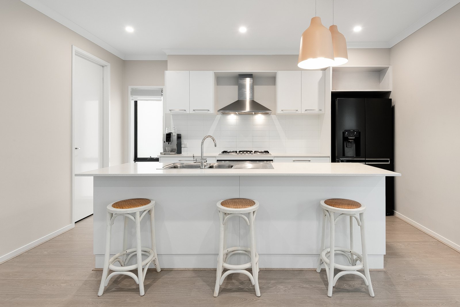 Sophisticated in design, the contemporary façade will impress on arrival. Inside, a central hallway draws the eye through the length of the ground floor, showcasing warm neutral interiors, contemporary flooring and light filled spaces, with a study off the entry providing the perfect place to work from home. The rear transitions to a spacious open plan living area, with north facing windows, floor-to-ceiling sheers, and direct access to the alfresco for seamless indoor-outdoor living. The quality kitchen features stone benchtops, a 900mm oven, gas cooktop, rangehood, Miele dishwasher, chic pendant lighting, and generous storage with a large walk-in pantry. Positioned to overlook the dining area and alfresco, entertainers will love the design of this space.