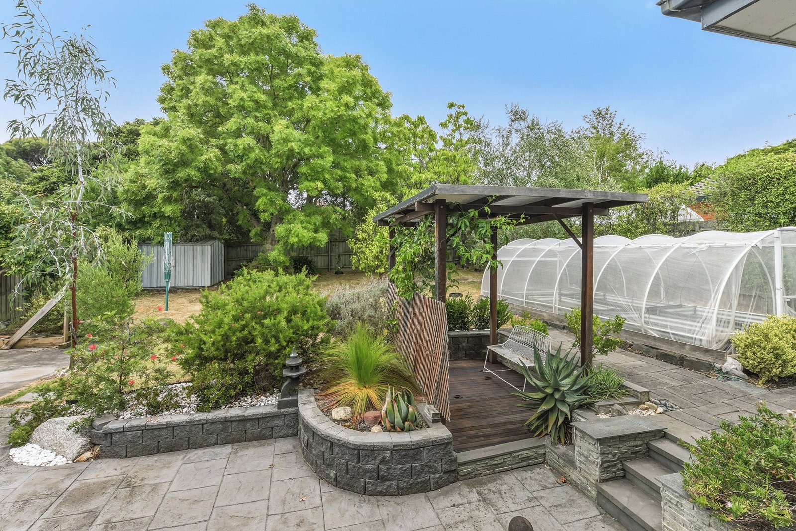 • Expansive rear yard with storage shed