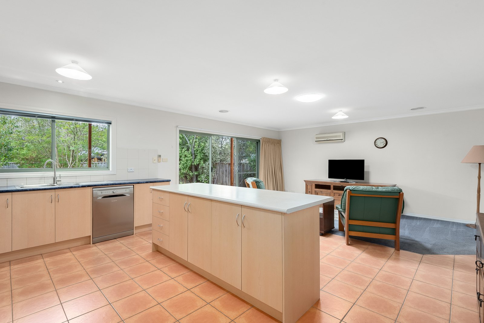 Nestled behind established gardens, the home enjoys a private setting. From the entry, the home leads into a formal lounge or dining space, providing a quiet space for retreating or entertaining. The adjoining open plan kitchen and family room forms the heart of the home, with sliding door access to the alfresco for an effortless indoor-outdoor connection. The kitchen is well-equipped with modern appliances including a 600mm electric oven, gas cooktop, dishwasher, ample bench space and generous storage.