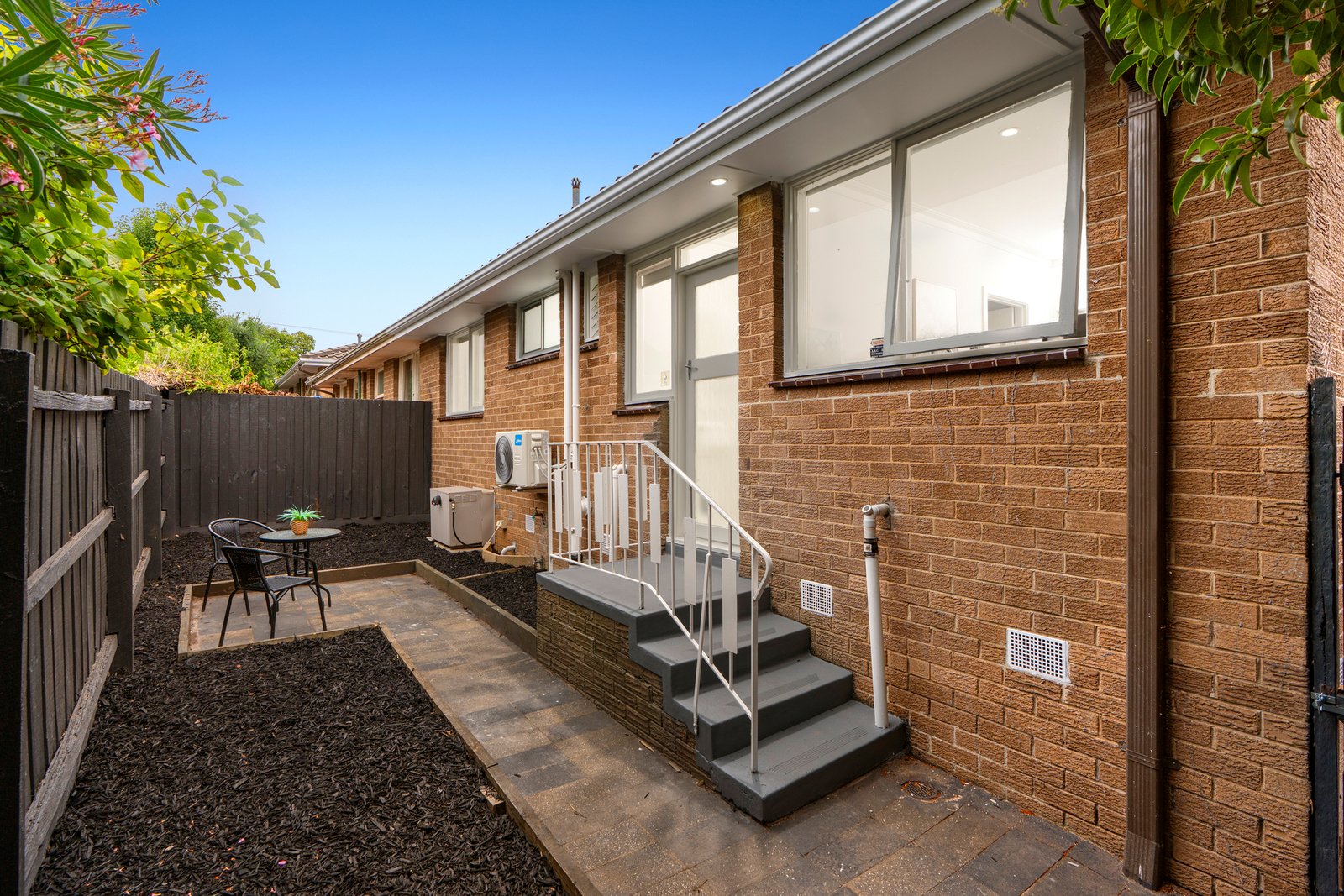 Accommodation includes two generously sized bedrooms with built-in robes, a stylish central bathroom, separate toilet and a full-sized laundry.