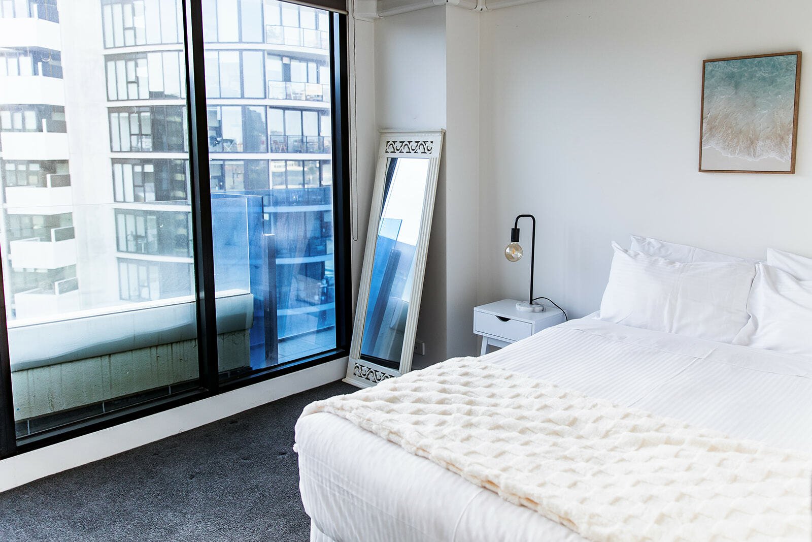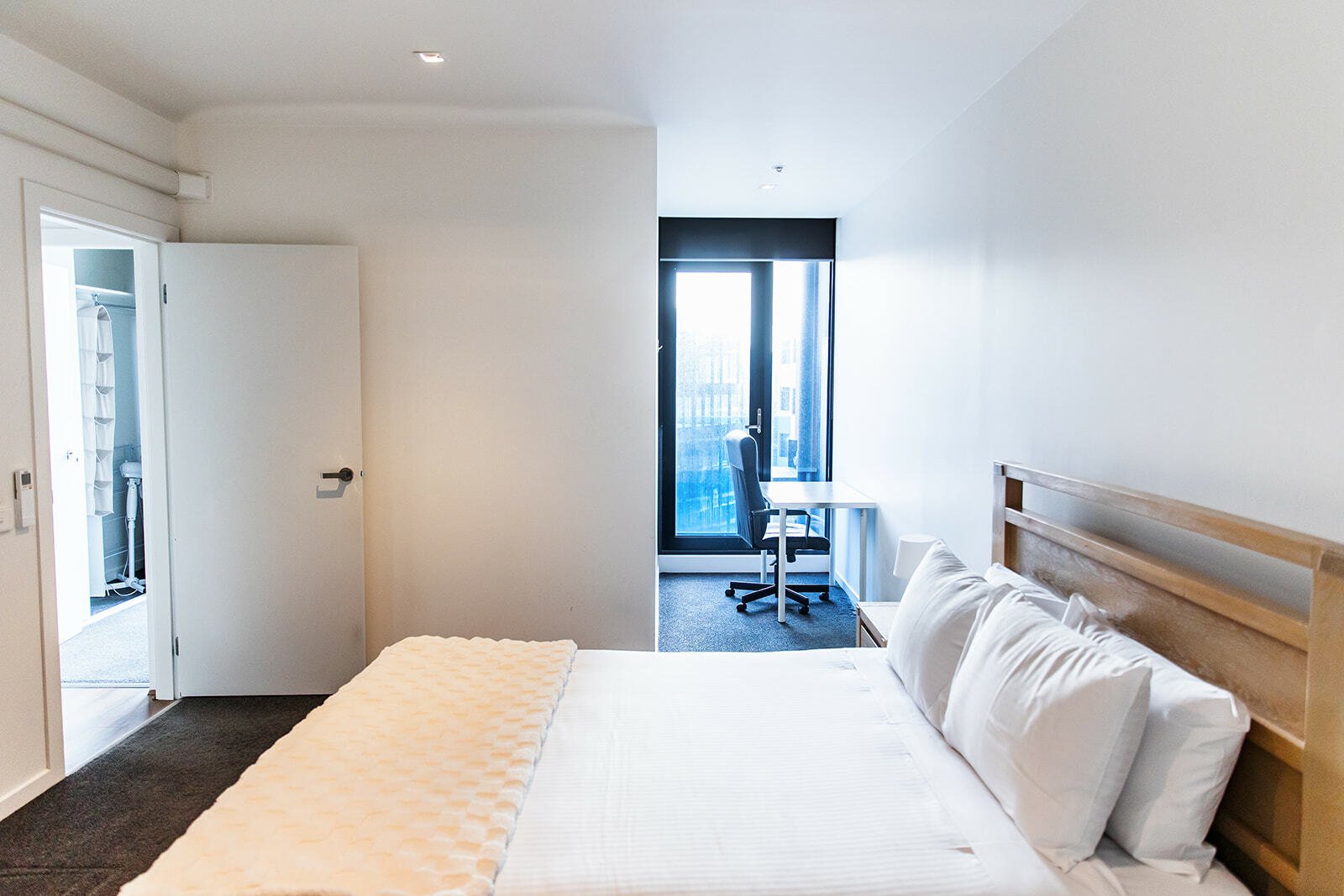Main bedroom with walk-in robe, study nook, private balcony and ensuite