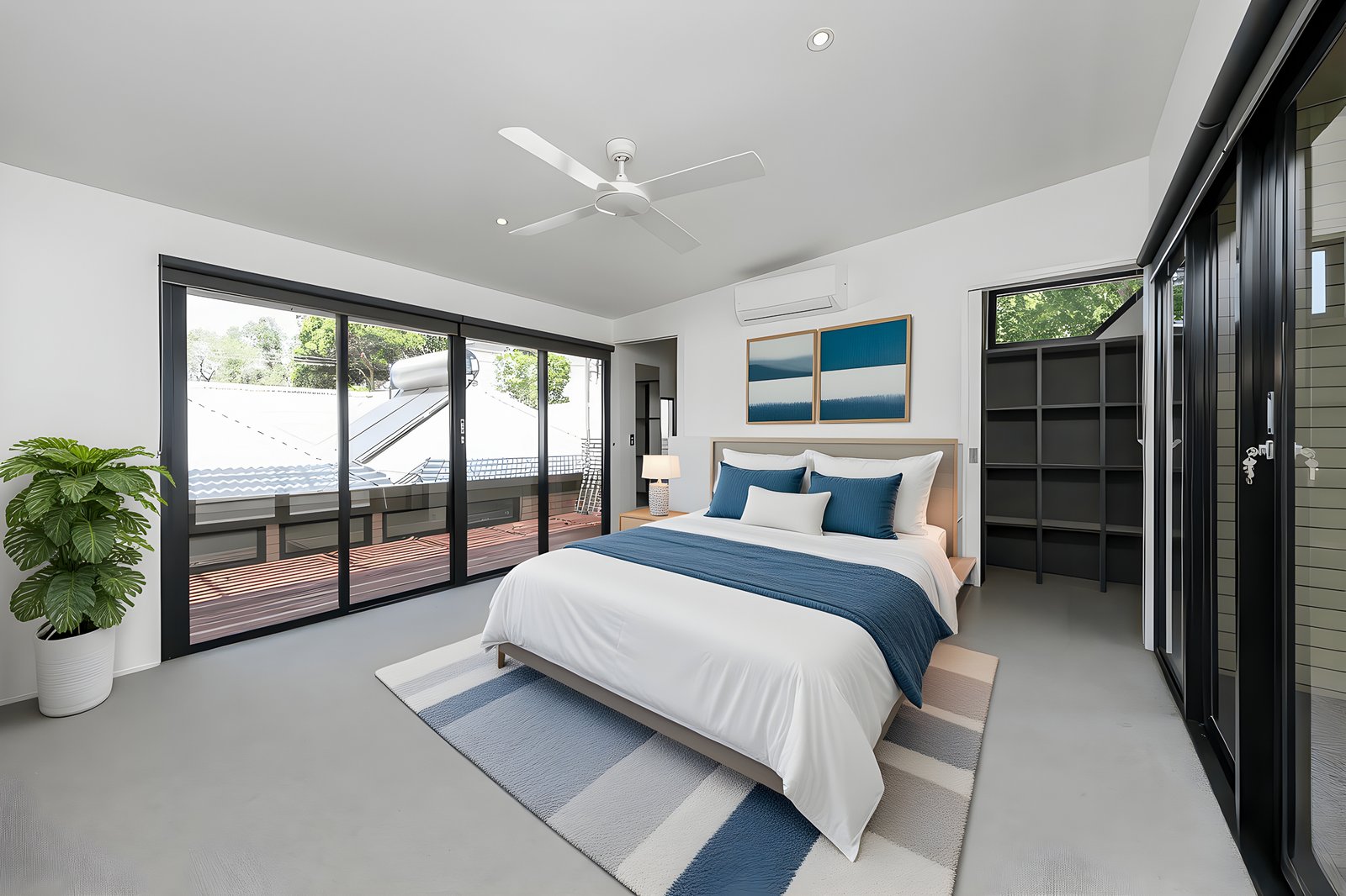 Upstairs is dedicated to a private main bedroom retreat, flooded with natural light and offering walk-in robes, an updated ensuite and two private decks.