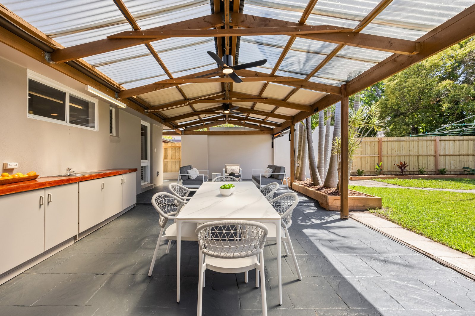 Outdoors, the home unfolds into a private sanctuary designed for comfort and versatility. A spacious self-contained studio or fourth bedroom, complete with its own ensuite, creates the perfect retreat for guests, extended family, or additional entertaining space. The expansive undercover area sets the scene for memorable gatherings, weekend BBQs, or relaxed evenings in the open air. An outdoor gas-heated spa and traditional steam sauna add a touch of luxury, while the lush lawn provides ample space for kids at play or pets to roam.