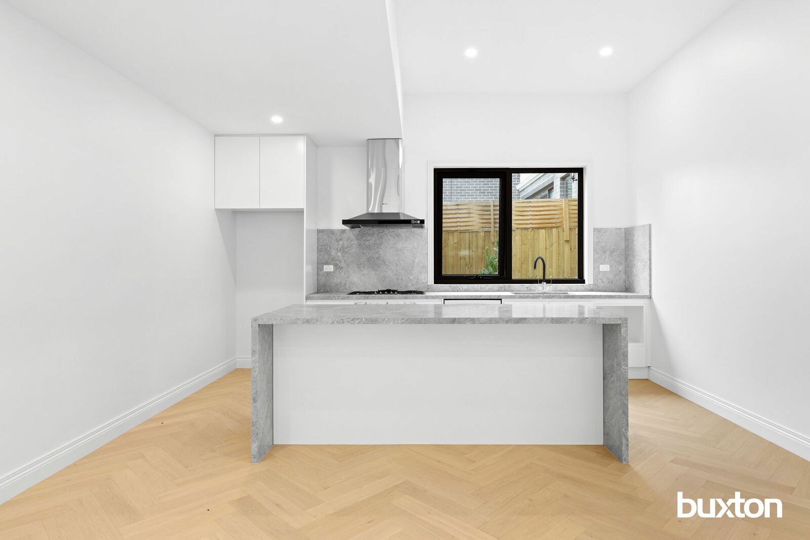 Step inside to discover light-filled open-plan living and dining zones, beautifully complemented by engineered timber flooring and a stunning designer kitchen. The kitchen features sleek stone benchtops, quality appliances, ample cabinetry and a generous island bench—perfect for everyday living and entertaining alike. Sliding doors seamlessly connect the living area to a private outdoor deck and landscaped garden, ideal for relaxed alfresco enjoyment.