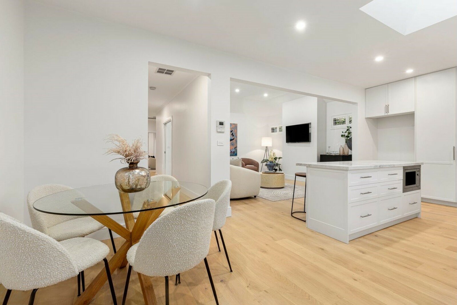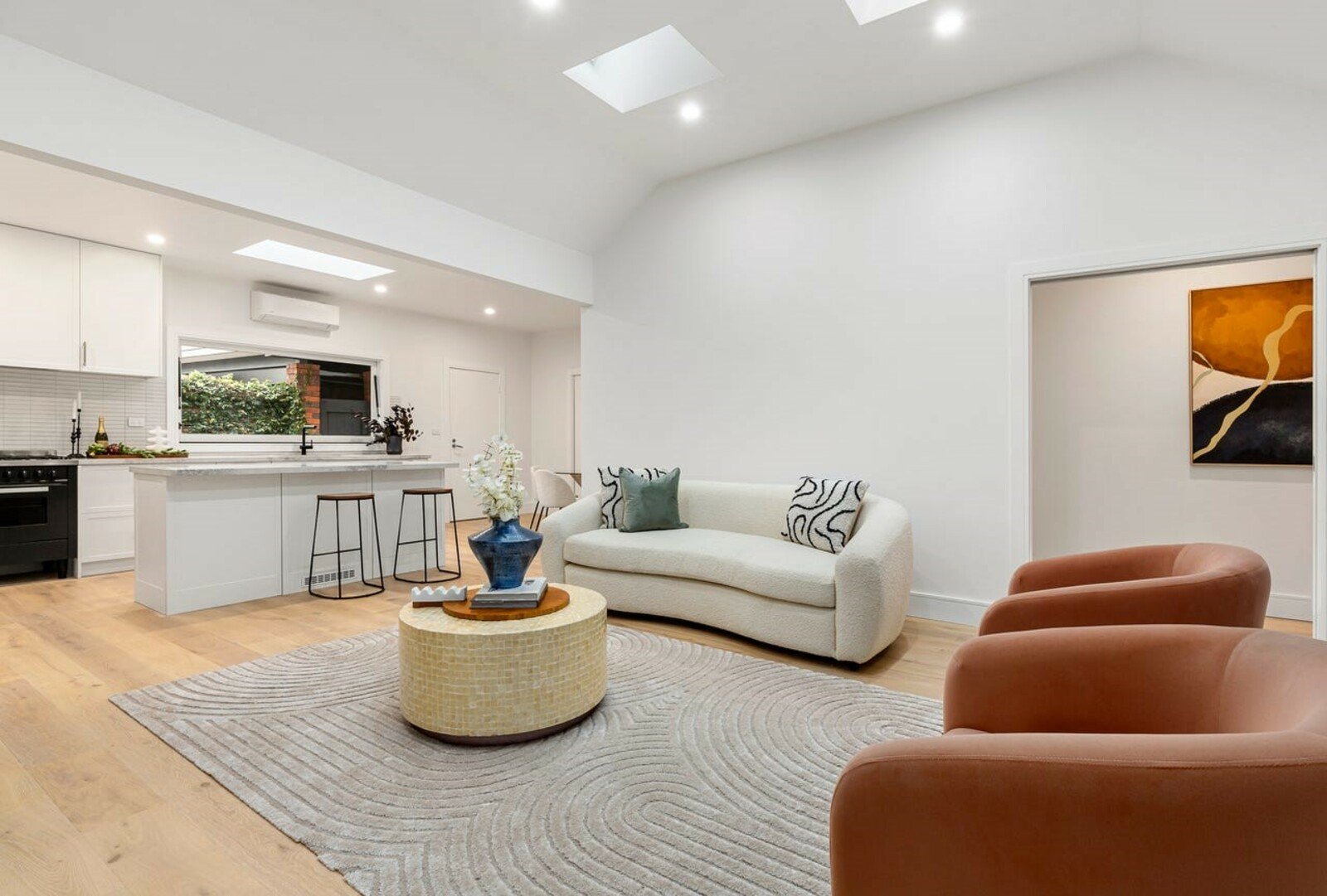 State-of-the-art renovation brings new luxury to this Golden Triangle townhouse, where the living is easy 200 metres from Half Moon Bay beach and a stroll to Village cafes and shops. The three-bedroom interior and north-facing outdoor living are perfect for single-level indulgence, with two living zones, a stylish Miele/Ilve kitchen with a servery...