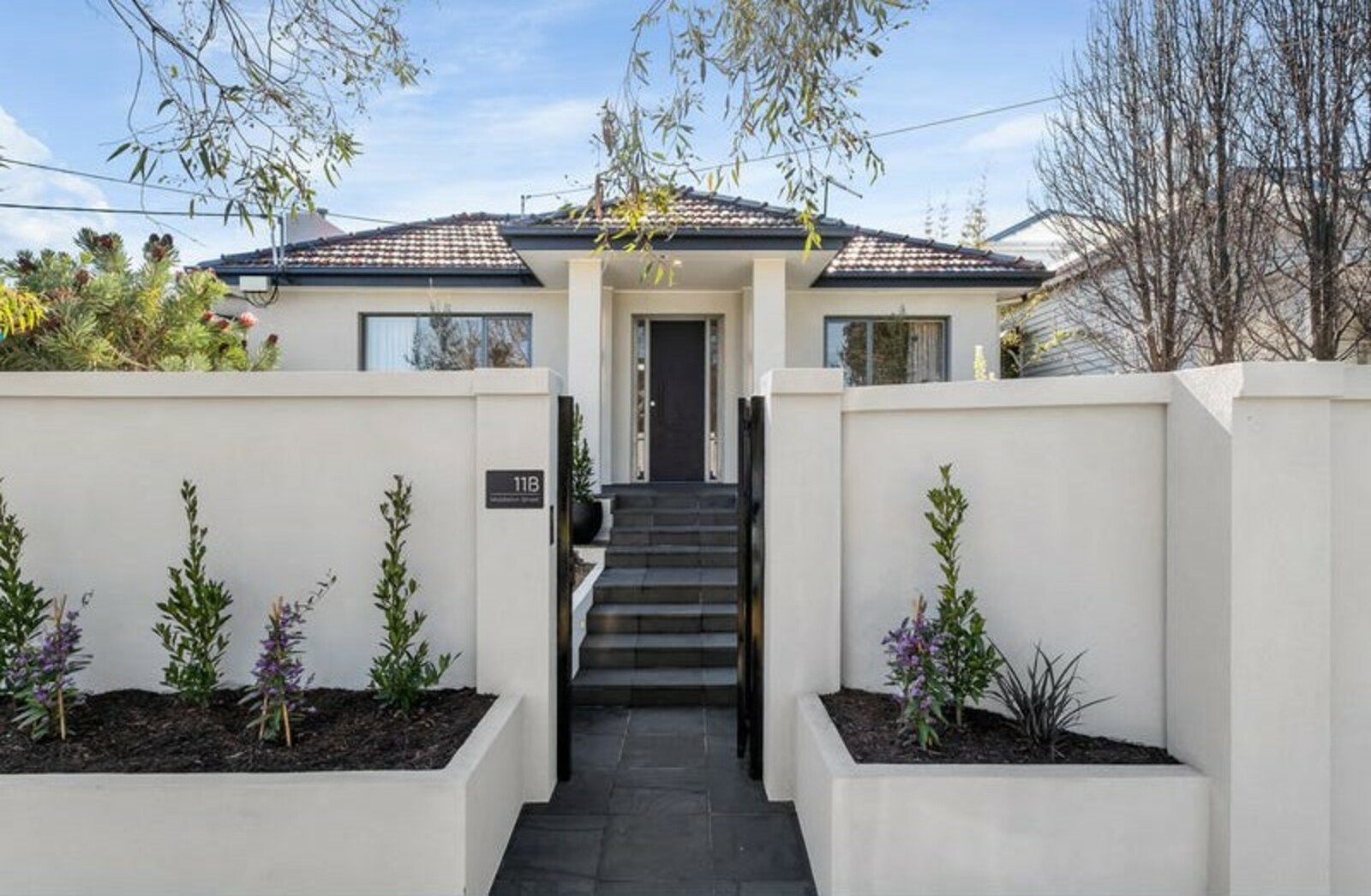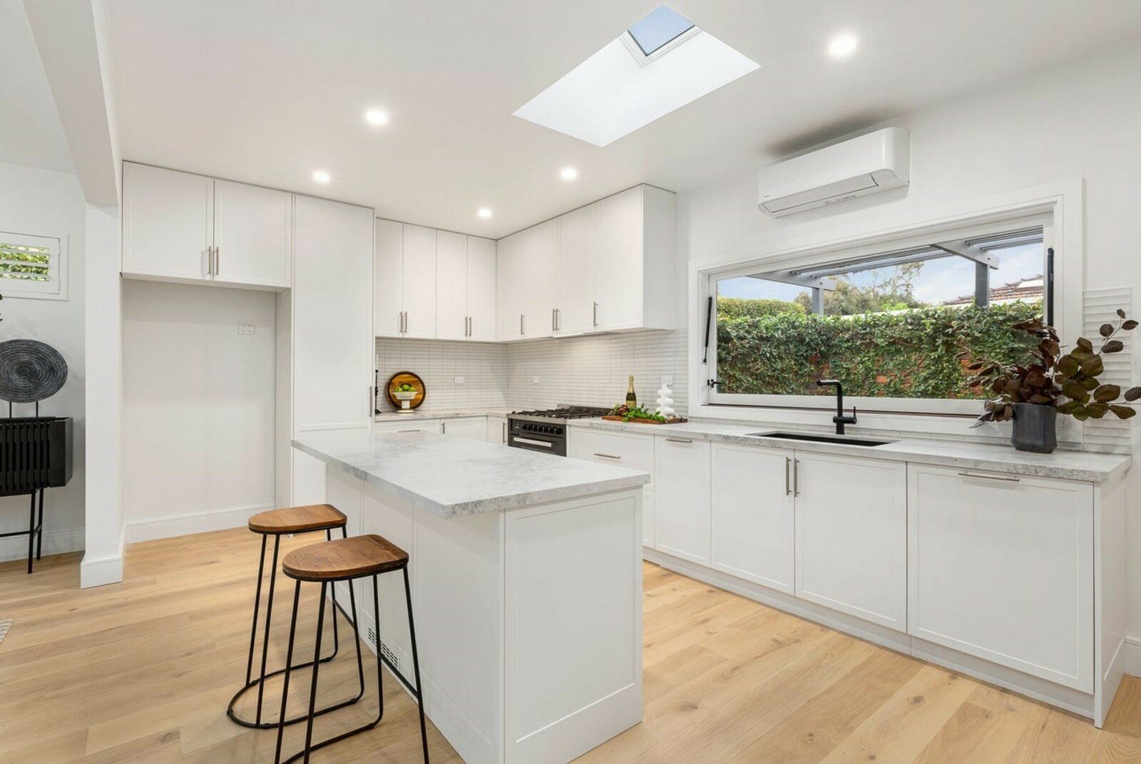 State-of-the-art renovation brings new luxury to this Golden Triangle townhouse, where the living is easy 200 metres from Half Moon Bay beach and a stroll to Village cafes and shops. The three-bedroom interior and north-facing outdoor living are perfect for single-level indulgence, with two living zones, a stylish Miele/Ilve kitchen with a servery window for when you’re entertaining in the courtyard garden, and an ensuite and bathroom with a luxe hotel vibe. Everything about this complete transformation impresses, from the professionally designed coastal garden that greets you on arrival to the high standard of interior finishes and features. With a prized streetfront position in one of Black Rock’s best streets, this is outstanding for a low-maintenance beachside lifestyle. Relax in the family room or take time out in the lounge with garden views, and see the new quality in the main bedroom’s and ensuite featuring floor-to-ceiling tiles, vertical towel rails and backlit mirrors. There’s a butler’s pantry/laundry with floor-to-ceiling storage, a freestanding bath in the main bathroom, wide-board oak floors and pure wool loop-pile carpet underfoot, and new ducted air conditioning, plantation shutters, curtains, and blinds. Outside has everything you want for easy living, including intercom entry, a rear double garage with a bin bay and storage space.