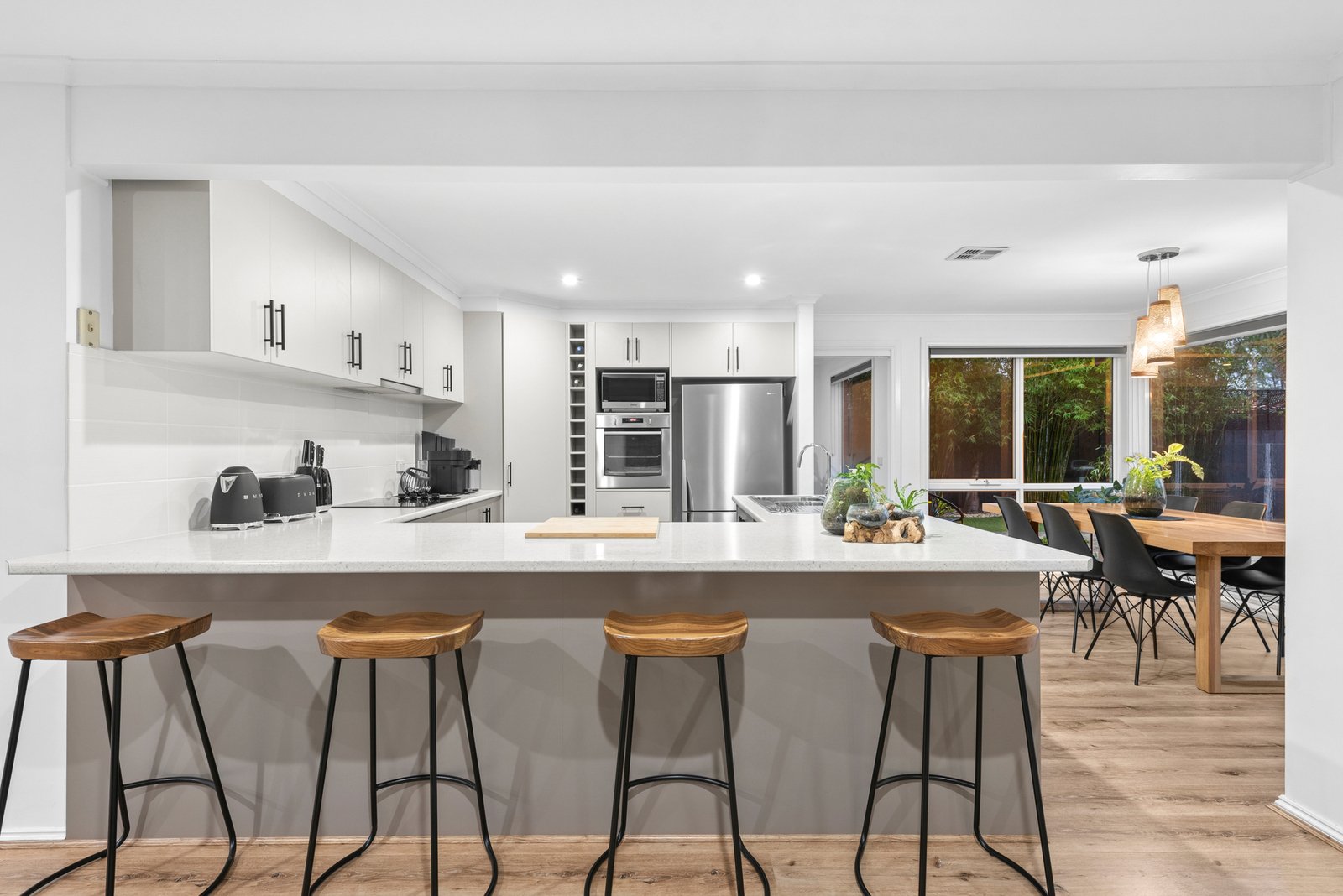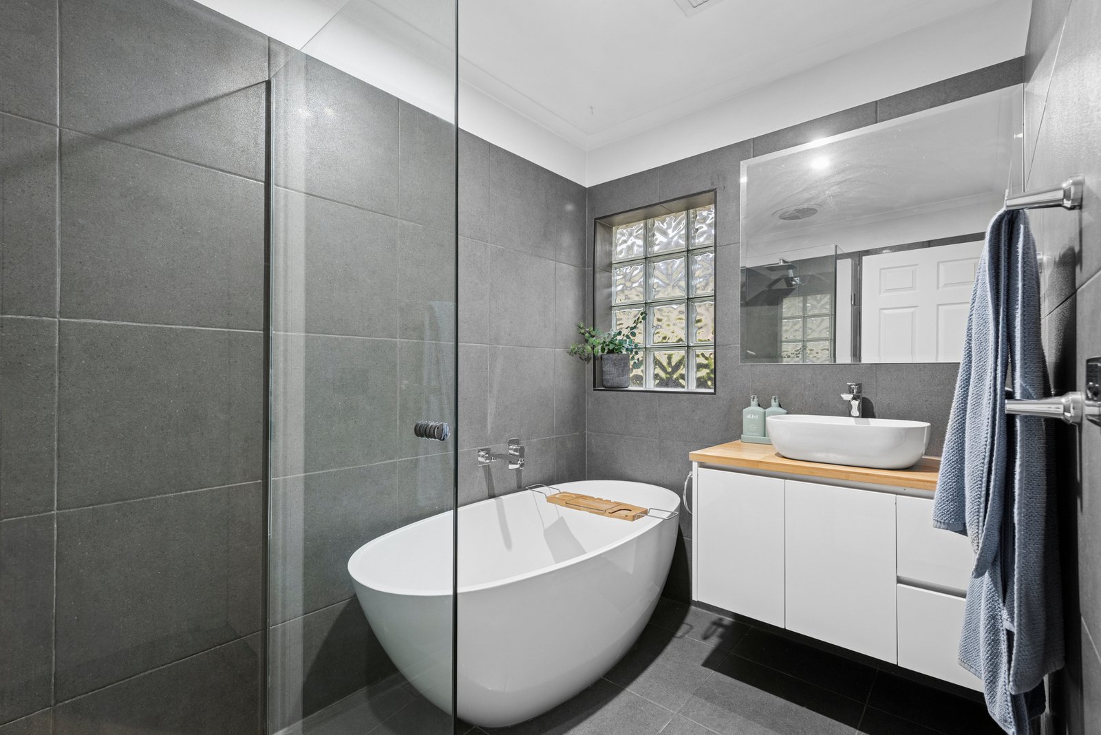 Avid hosts will love the well-equipped kitchen with Bosch dishwasher, electric cooktop & handy breakfast bar. Upstairs, discover the primary suite with dual built-in robes and ensuite along with two more bedrooms (BIRs) and a stunning family bathroom with freestanding tub. A fitted ground floor office gives options as an additional bedroom if needed.