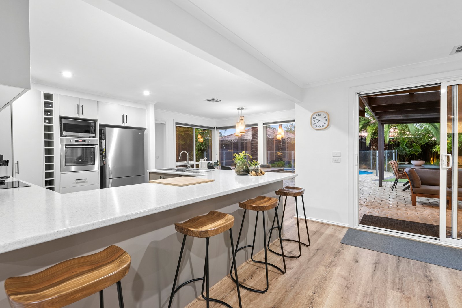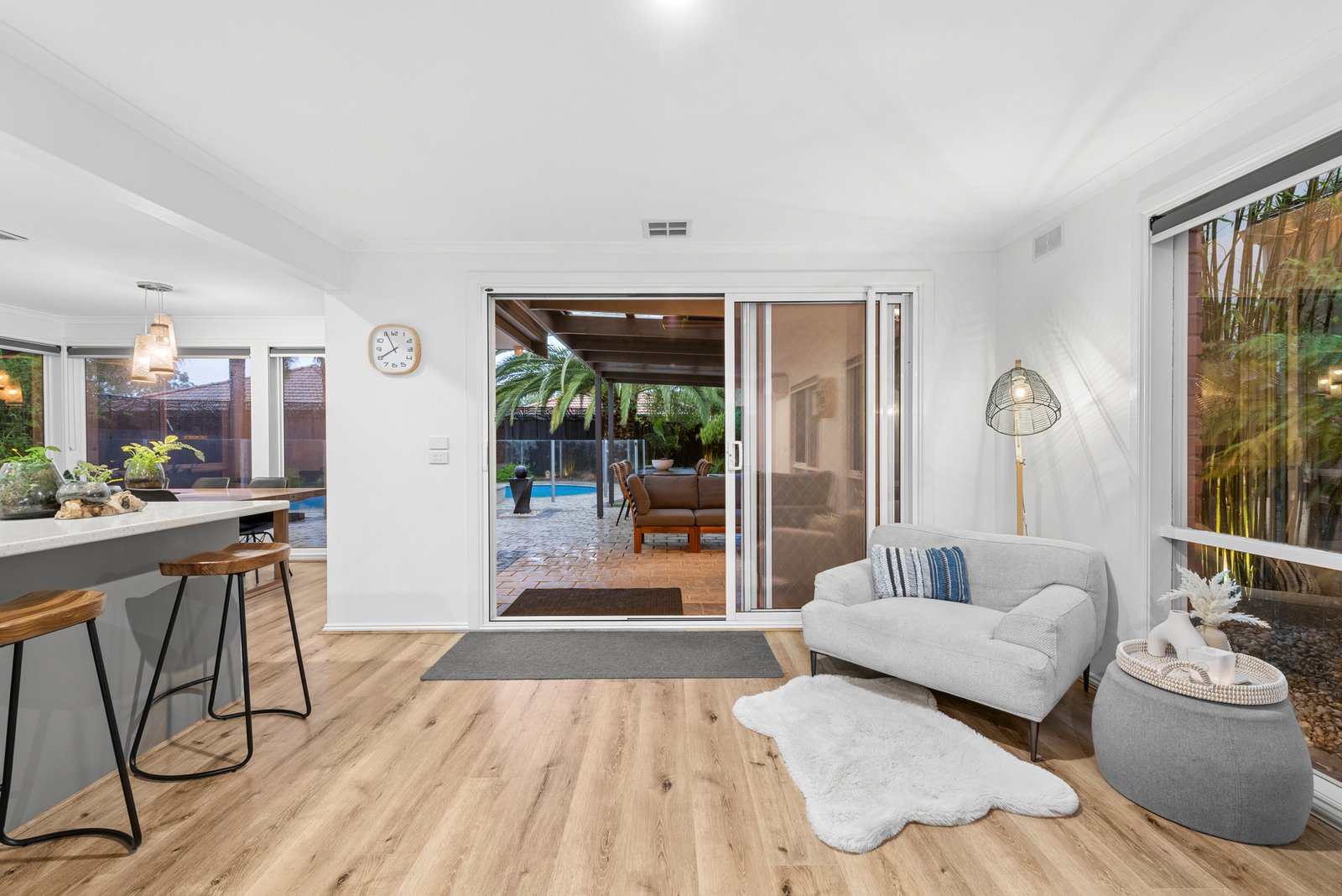 Instantly appealing from the street, the two-storey residence opens to interiors that are warm, welcoming & stylish - and filled with abundant sunlight throughout. Set under a soaring pitched ceiling, the lounge is centred around a cosy gas fireplace and is perfect for quiet nights in. Further on, a flexible pool-view dining room/study, a relaxed meals area and generous family room provide families with even more invaluable living space and give everyone plenty of room to spread out and enjoy.