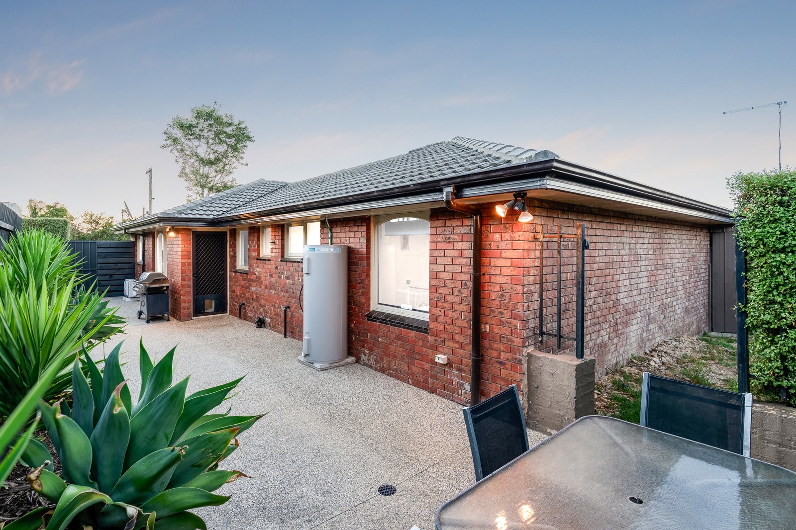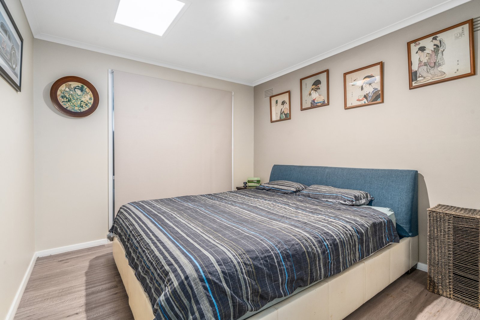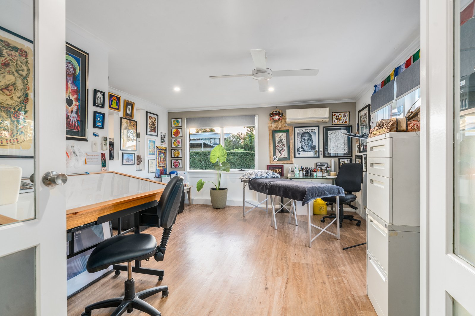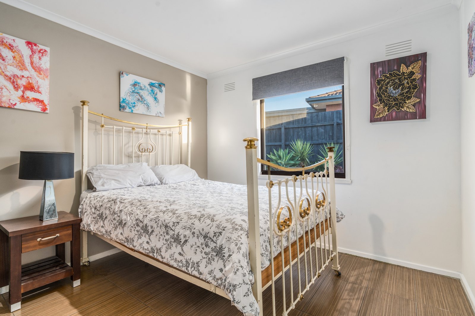 Designed with practicality in mind, the home offers three spacious bedrooms, all serviced by a central bathroom, along with a large light-filled living zone perfect for relaxing or entertaining. A separate kitchen features stainless steel 600mm oven, electric cooktop and rangehood, with an adjacent dining area for everyday functionality. Timber laminate flooring and tiles throughout create a low-allergy, easy-care environment, complemented by three reverse-cycle split systems, ceiling fans, downlights and skylights to ensure year-round comfort and natural light.