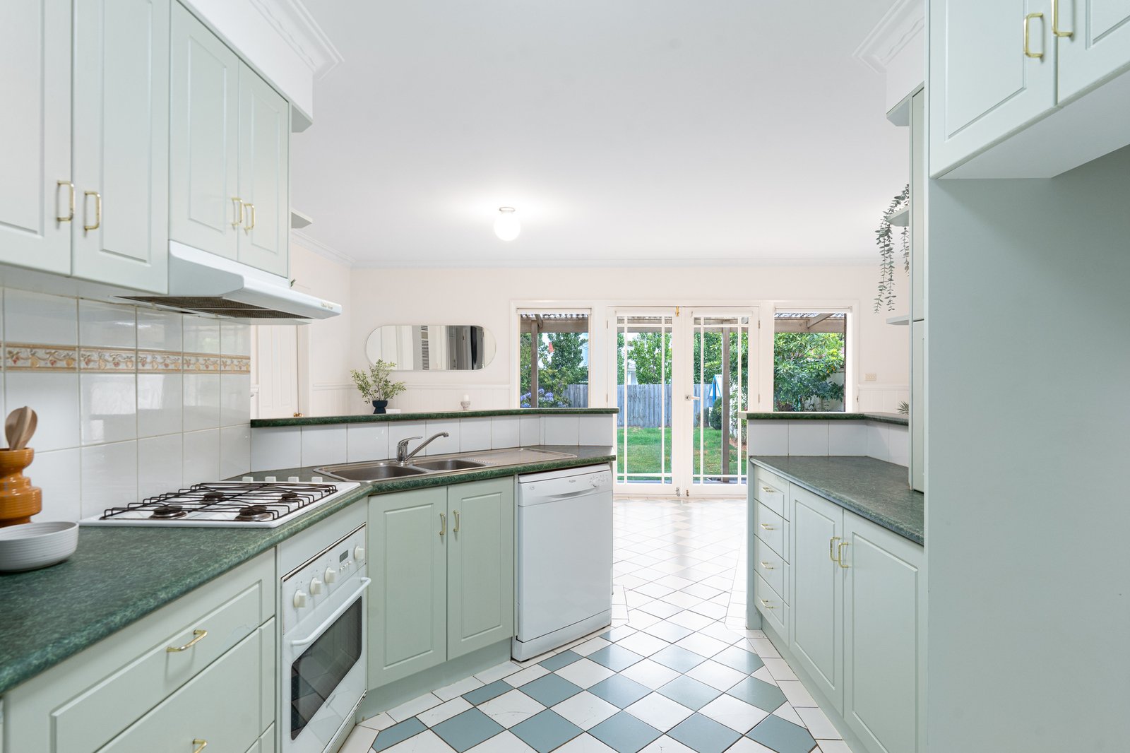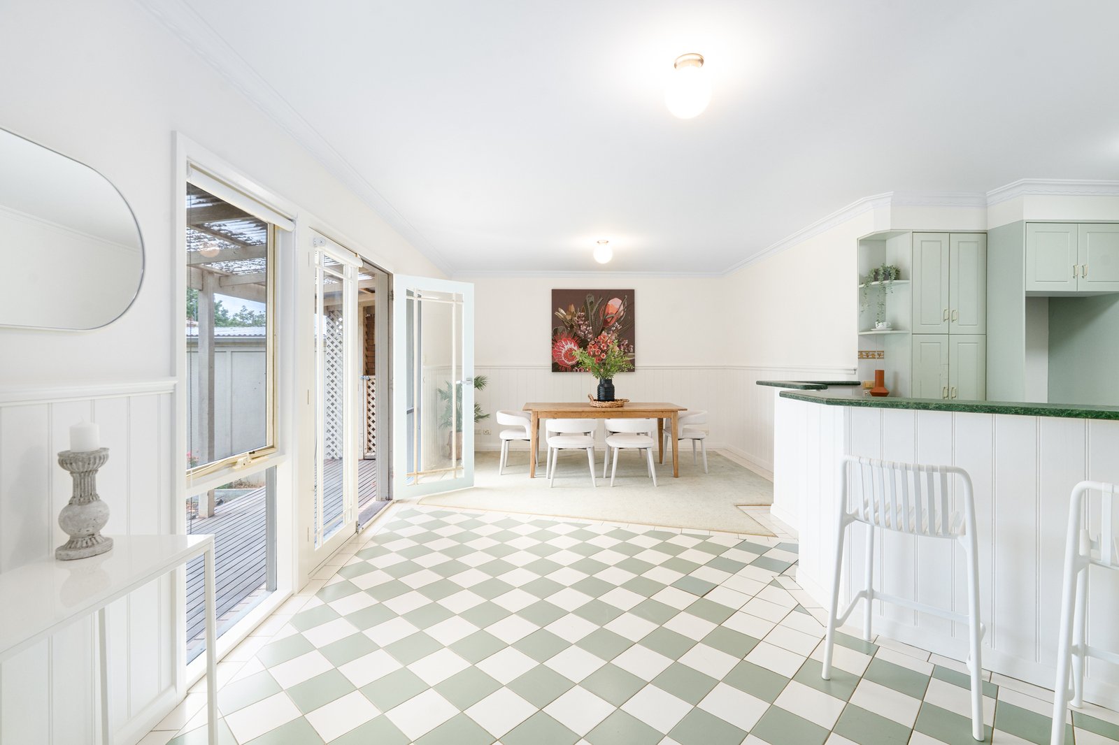 Set in a quiet tree-lined street, the classic double fronted brick veneer is welcoming in appeal. From the entry, double doors lead into an inviting living and dining area featuring an ornate fireplace for a cosy ambience, plus split system heating and cooling for modern comfort. The rear of the home transitions to an open plan kitchen, dining and family room with classic dado wall paneling, and beautiful French doors opening up to the rear verandah, ideal for indoor-outdoor living and entertaining. The well-equipped kitchen features a 600mm oven, gas cooktop, dishwasher, ample bench space, generous storage, and a raised breakfast bar.