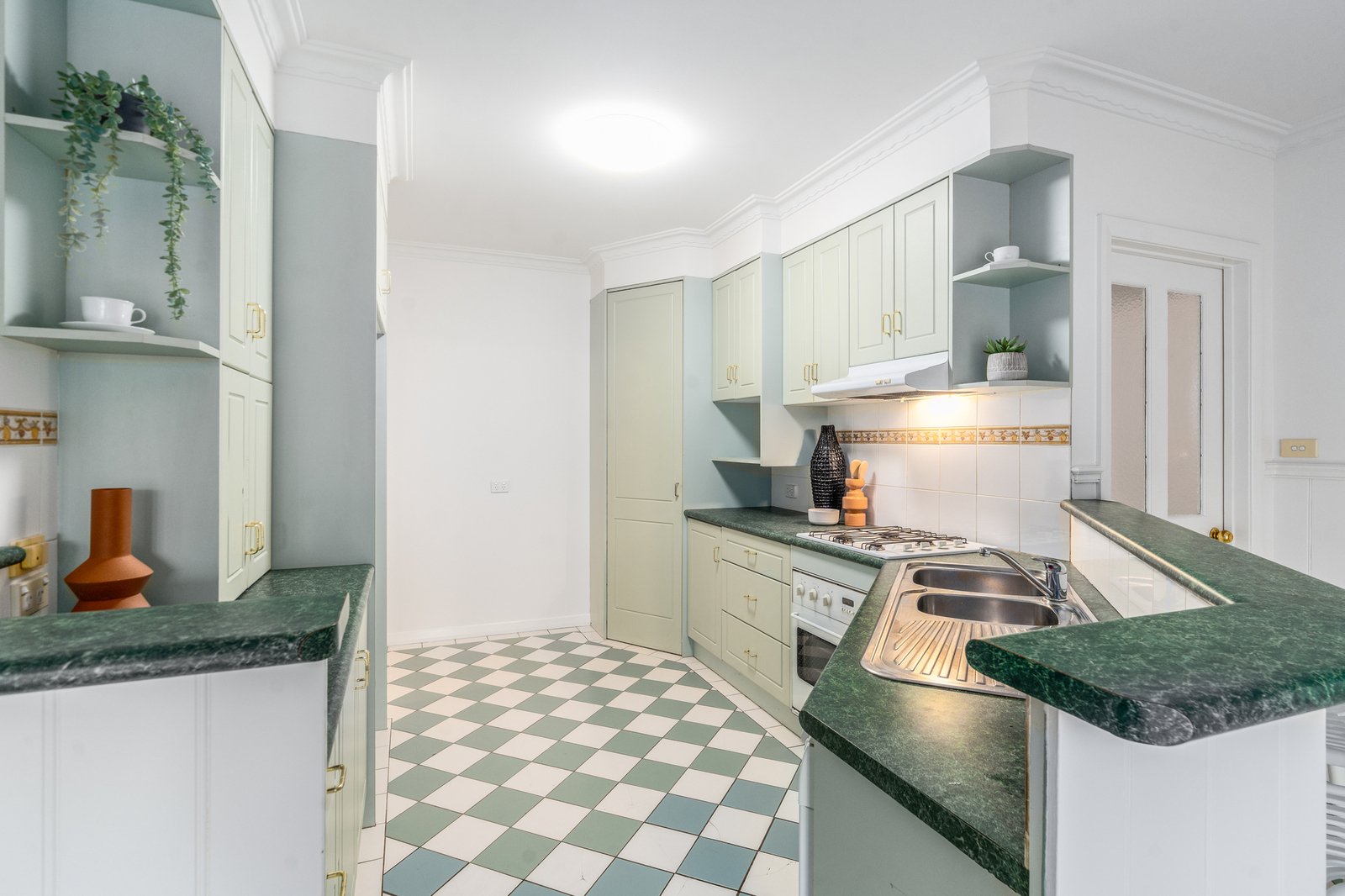 The spacious main bedroom includes built-in robes with dresser, and two further bedrooms also feature built-in robes. The central bathroom is presented in traditional finishes, with a bath, separate shower, leadlight window, brass tapware, timber vanity and dado panels. A rear laundry and separate wc cater for family functionality.