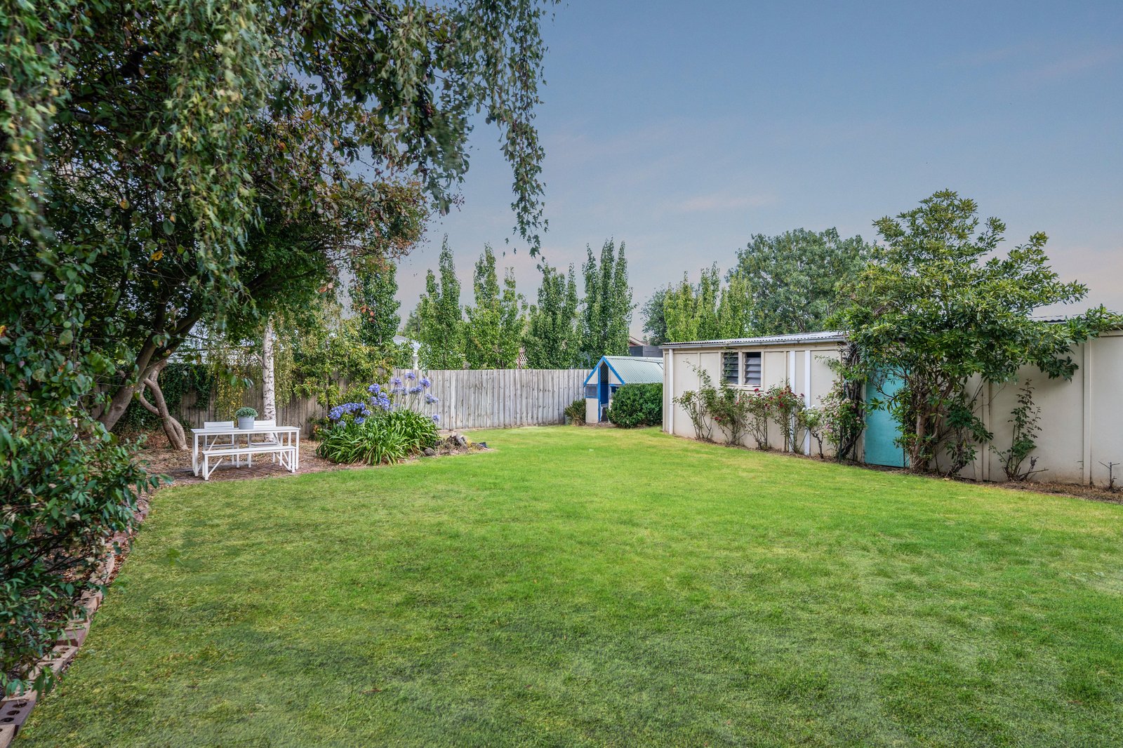 Outside, the covered verandah offers a private and sheltered space for relaxing or entertaining, overlooking the generous backyard. The large secure lawn area is bordered by established gardens, providing a tranquil and secure space for the kids or pets to play, with a cubby house at the rear. The long driveway, carport and garage accommodate plenty of off-street parking, with workshop facilities for the handyperson of the home.