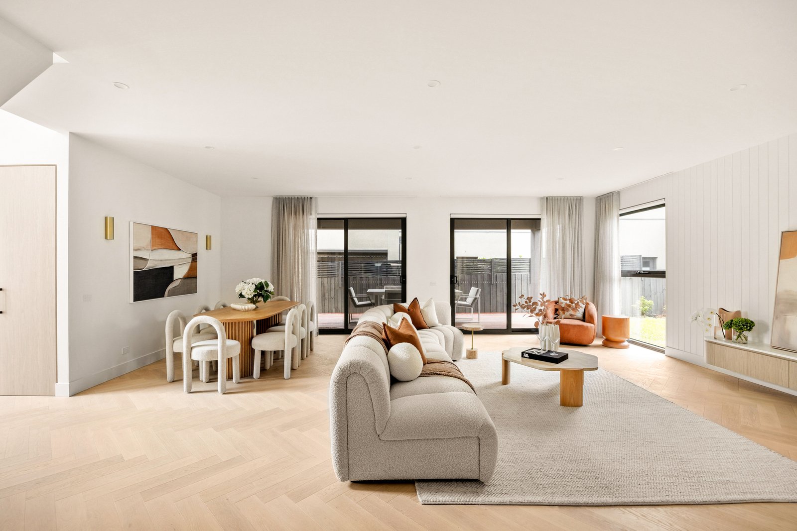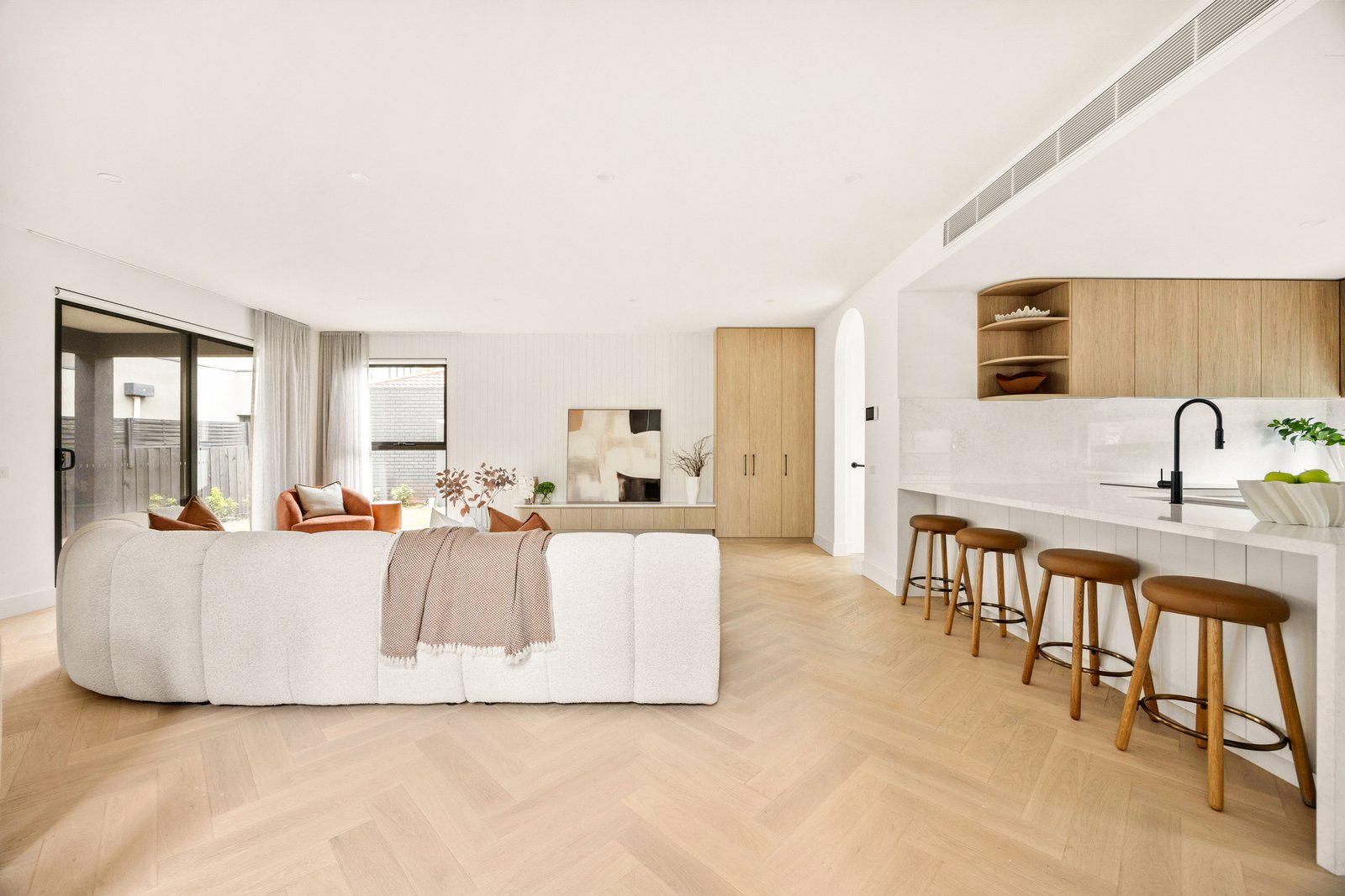 Nestled in the heart of Ashburton, this newly built home offers exceptional space, style and functionality across two beautifully appointed levels. Designed with the modern family in mind, the residence features an open-plan living and dining area, adorned with parquetry flooring and seamlessly connected to the covered alfresco through sliding doors, allowing effortless indoor-outdoor flow for year-round entertaining. A built-in TV unit with a stone top and storage provides a sophisticated touch, while a secondary rumpus room upstairs offers additional space for family activities or relaxation.