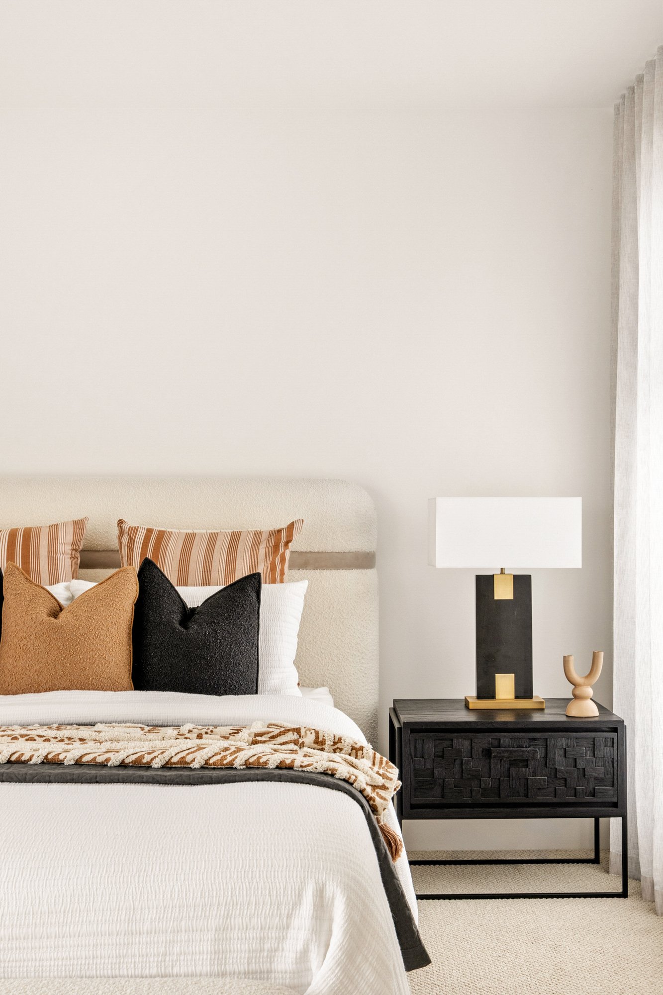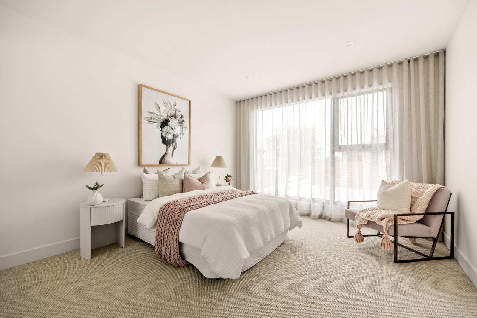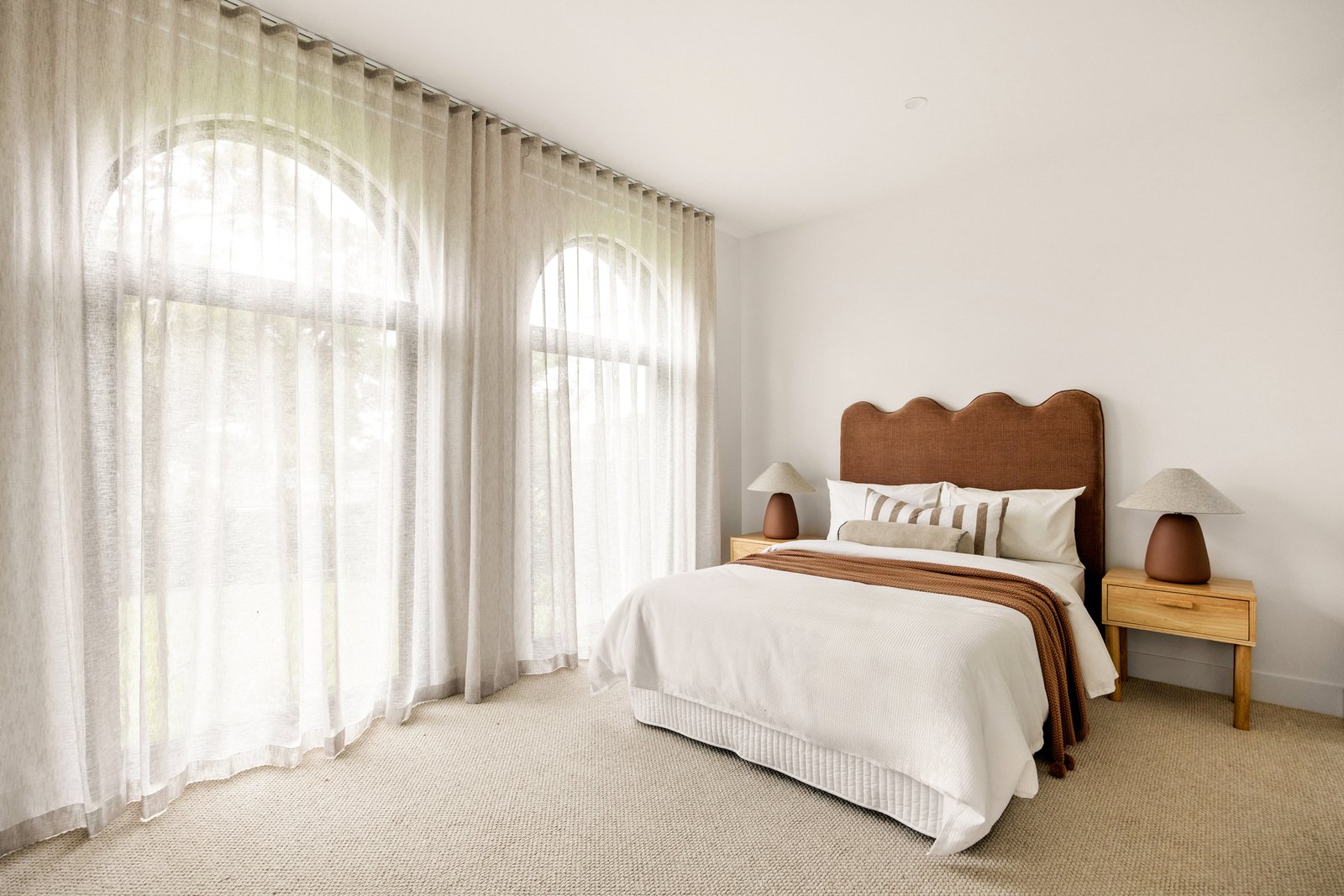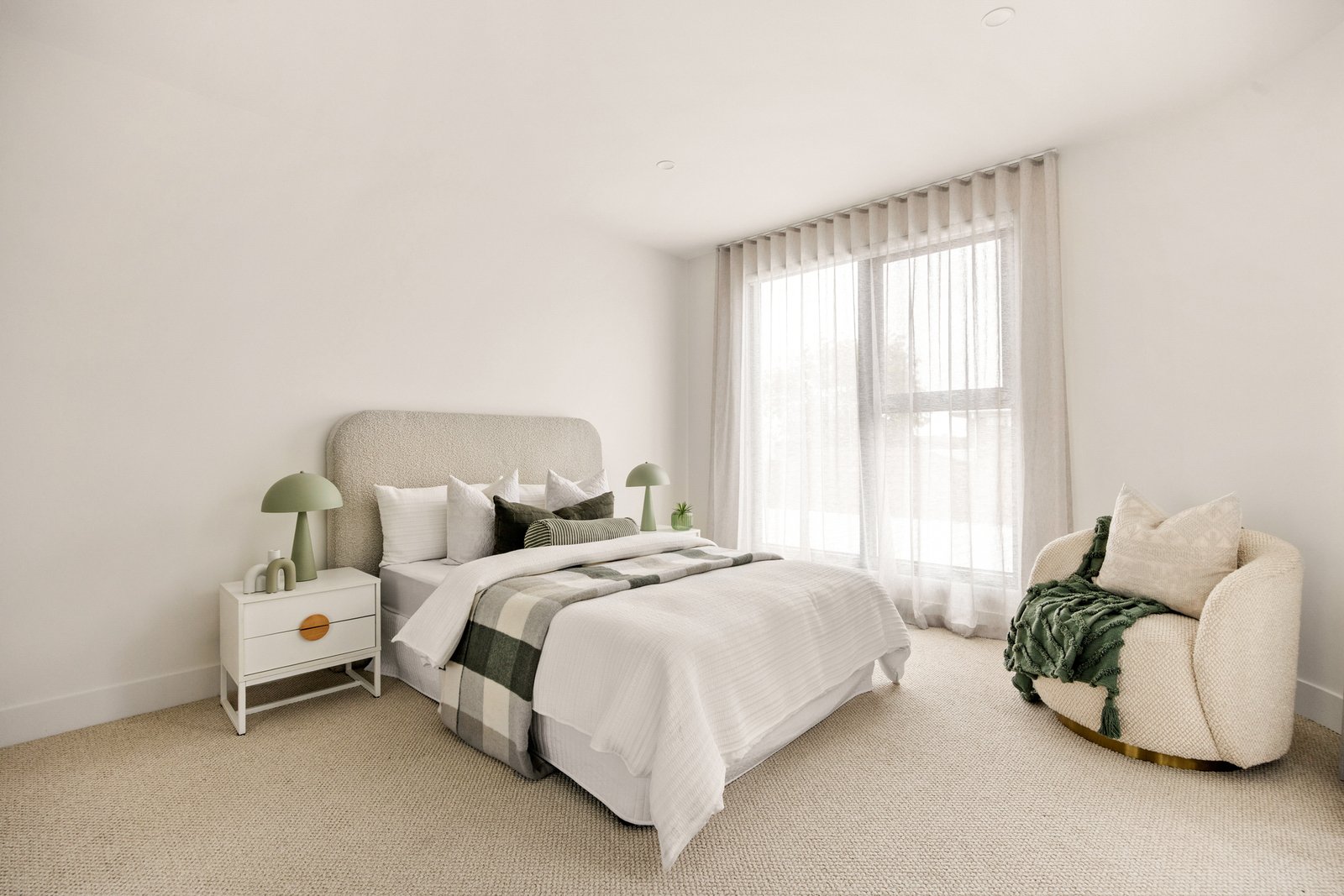 Accommodation comprises four spacious bedrooms, including a master suite downstairs with a walk-in robe and ensuite, and a second master upstairs with a walk-in robe and ensuite. Both master bathrooms feature double vanities, stone benchtops and sleek black tapware. The upstairs master also offers a freestanding bathtub, adding a touch of luxury. Two further upstairs bedrooms are equipped with built-in robes, and the plush carpeted flooring ensures warmth and comfort.