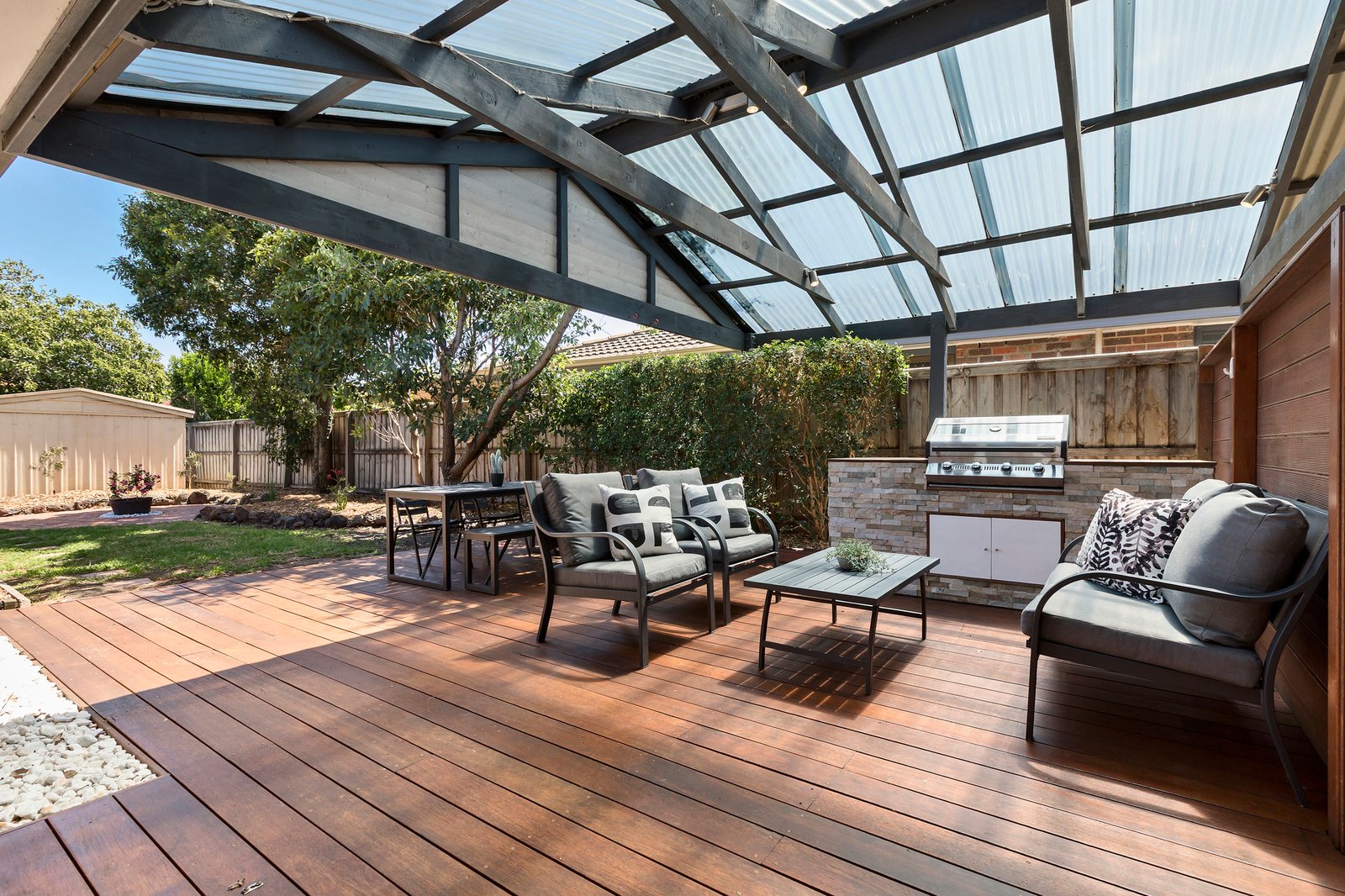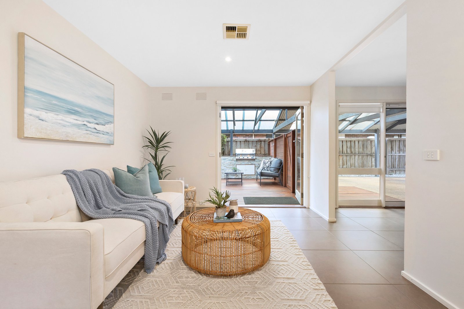 With its tranquil court setting and the bay mere moments away, this 4-bedroom, 2-bathroom home offers the family space and lifestyle you’ve been seeking. Just footsteps from the Longbeach Trail – perfect for weekend walks and bike rides – you’ll love the convenience of the beach, schools and shopping all nearby! Generous formal front living and dining invites you to relax, capturing the northern sunlight and leafy garden views. The modern central kitchen is enhanced by waterfall-edge stone benchtops and glossy cabinetry, featuring BOSCH appliances and an integrated Miele dishwasher, complemented by a second living zone with French doors opening to a covered entertaining deck. Get ready to host with ease using the outdoor built-in barbeque, while the kids take over the private, secure backyard and cubby house. Peacefully tucked away from the living zones are four robed bedrooms, the master bedroom with an ensuite, with the remaining three bedrooms sharing the family bathroom and separate toilet. Appointed with ducted heating, evaporative cooling, a large work shed, water tank, instant hot water and double carport. In a tranquil yet highly convenient family pocket, this spacious home is within strolling distance of the Edithvale General Store, recreation reserve, public golf course and wetlands. Within moments you’ll find Edithvale Primary School, childcare, public transport and stunning beaches.