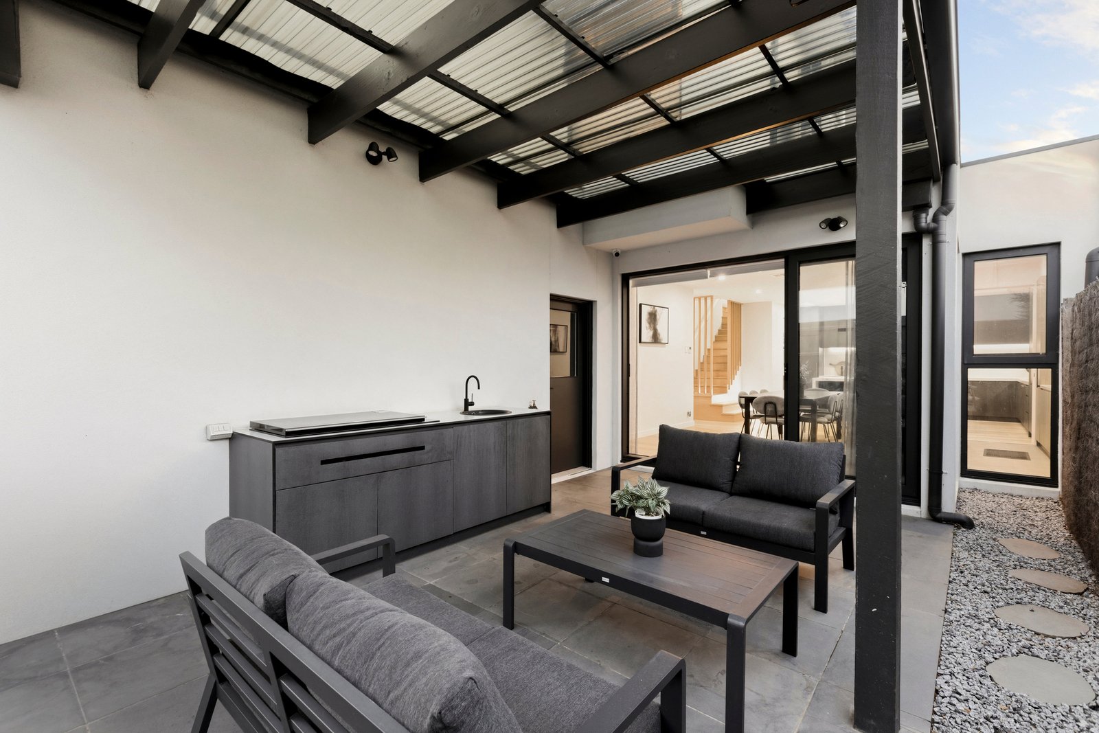 Bathed in natural light, the main living and dining zone connects seamlessly to a covered alfresco area with alfresco and built-in barbecue, creating a vibrant indoor-outdoor setting for year-round enjoyment. Beyond, a meticulously landscaped Japanese-inspired garden offers a tranquil, low-maintenance backdrop, perfectly suited to busy modern lifestyles.