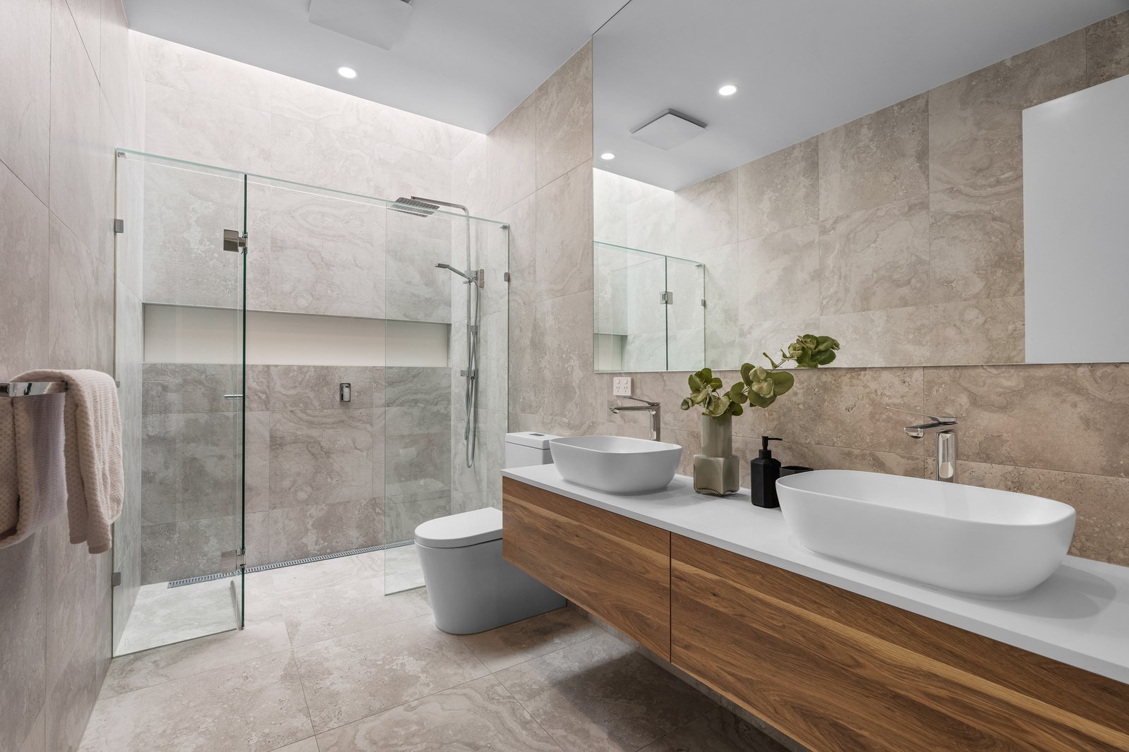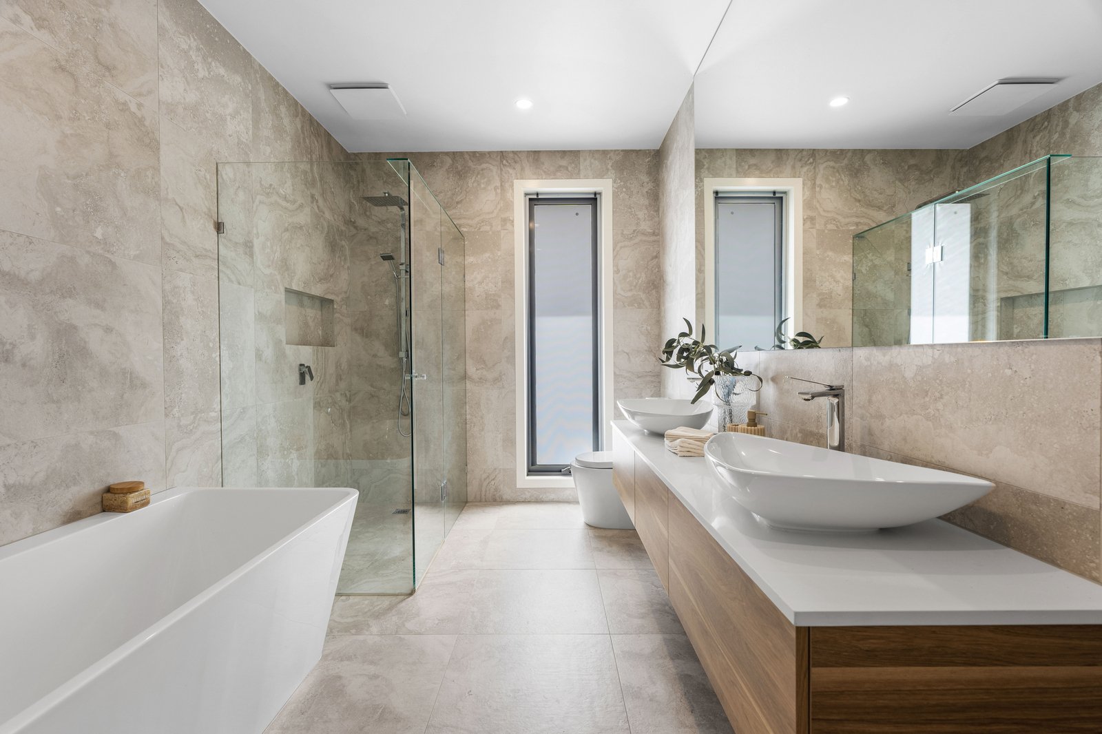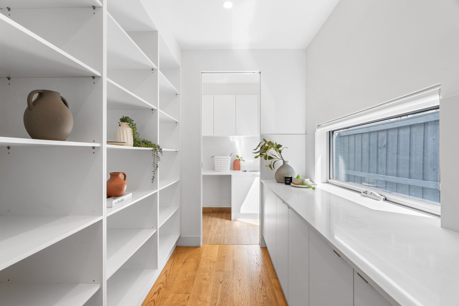 Crafted to a discerning specification with well-proportioned spaces, lofty squareset ceilings and high 2.4m jambless doors, this architectural home stars a cutting-edge Bosch appliance kitchen (with 900 oven and gas cooktop) with a huge butler's pantry and separate laundry...and serves up luxury with a marble-wrapped dining-bench! Offering quiet luxury in three fully-tiled bathrooms (including ensuite with a vast skylit shower), even the storage is architecturally crafted with a glam walk-in robe, tall built-ins and bonus walk-in storage for the adaptable fifth bedroom.