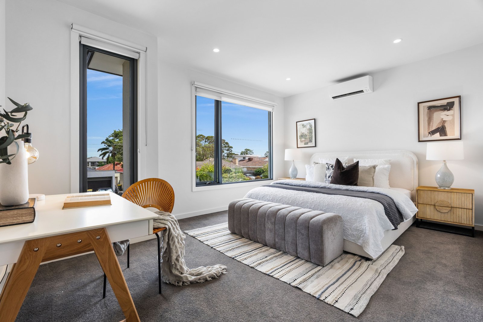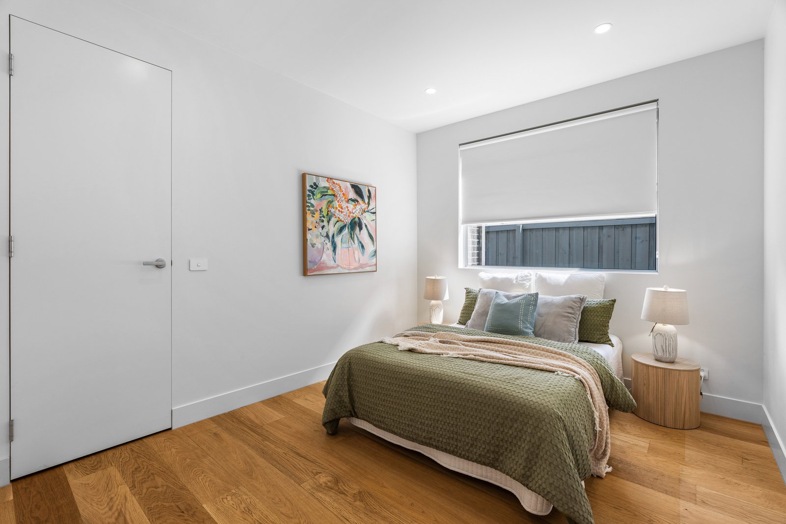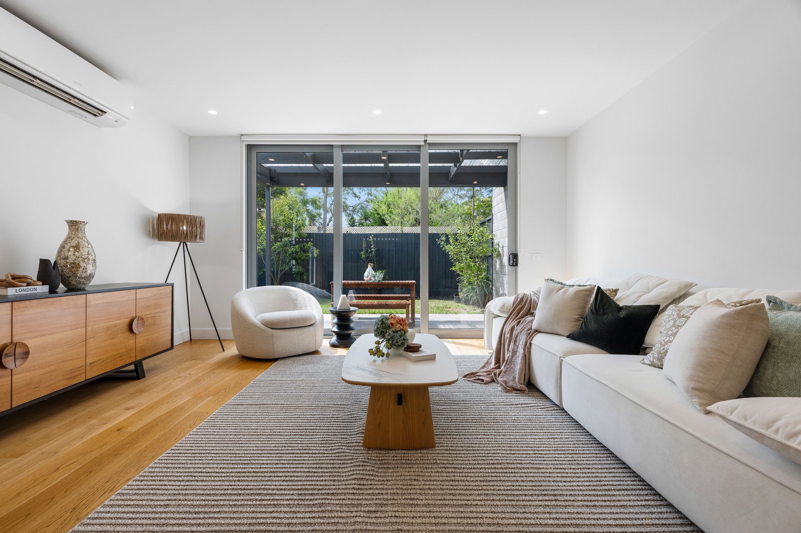 Curated with textural oak floors, natural and composite stone benchtops (even for the laundry), and dual e-screen and block-out blinds on tall double-glazing, the home is individually climate-controlled by reverse-cycle air-conditioning to every room, and secured by video-intercom and an alarm.