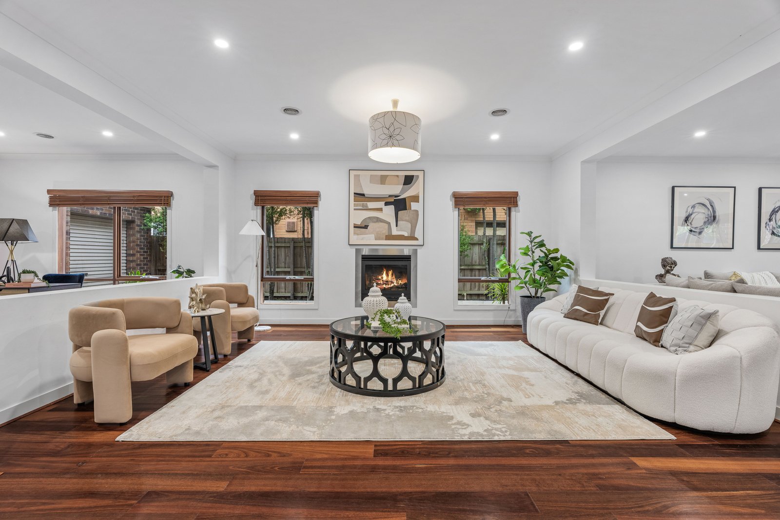 Appointed to beyond prestige standards with an immense terrazzo wraparound dining-bench fronting a state-of-the-art Smeg appliance kitchen (with even more immense butler's pantry and family laundry beyond), the home features a clever bathroom design with ensuite-access for almost every bedroom and a 5 Star dual-vanity ensuite with deluxe bath and private WC for the master-domain.