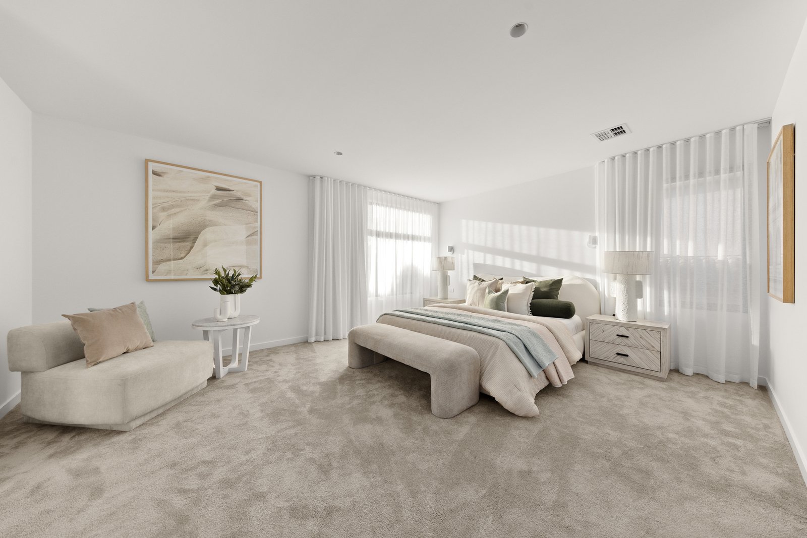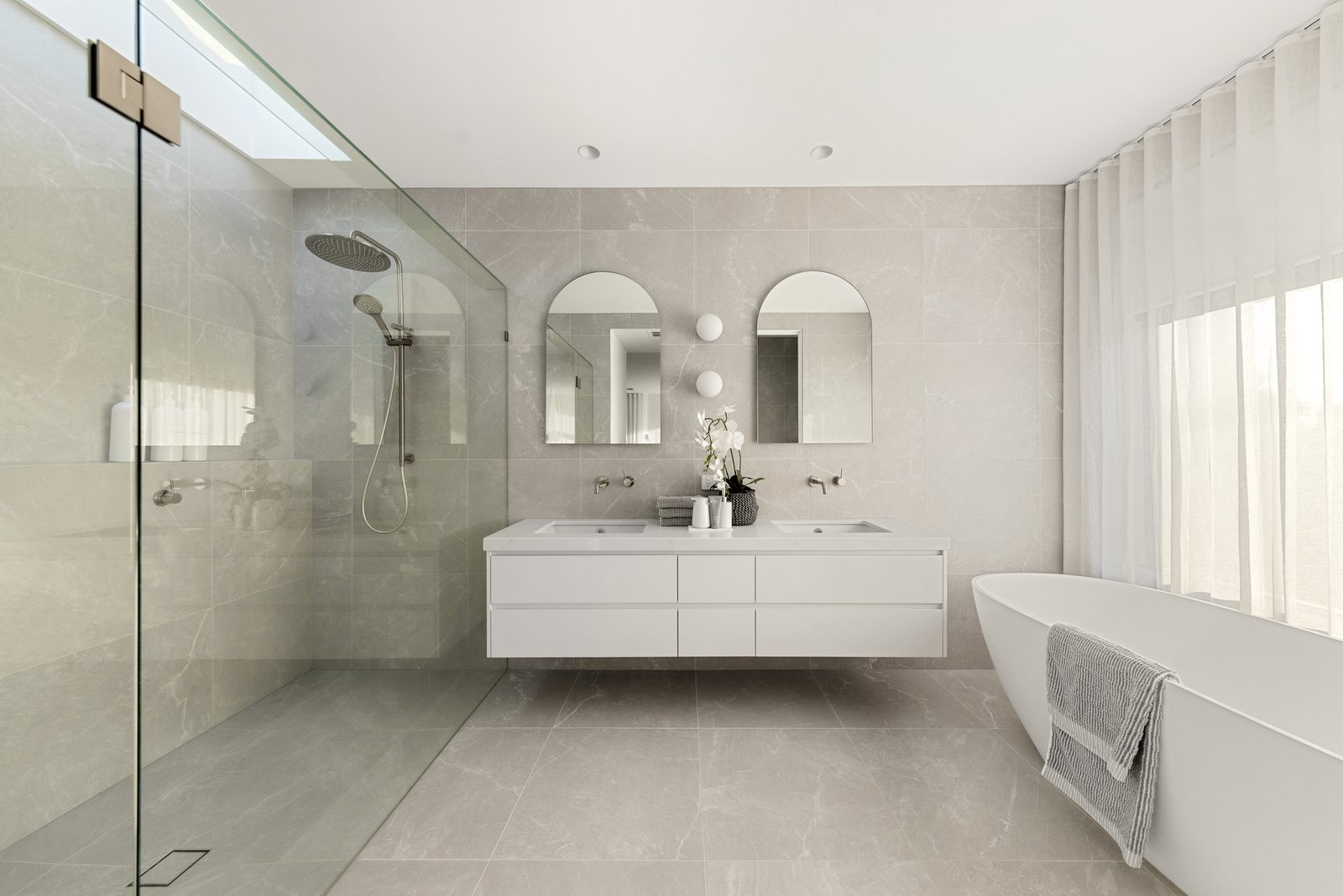 Accommodation is superbly zoned and beautifully appointed, offering outstanding flexibility for families, guests or multi-generational living. The master suite is a true sanctuary, highlighted by a generous walk-in robe and luxurious ensuite, with skylights adding natural light and a calming sense of space. A guest bedroom is cleverly positioned with personalised outdoor access, creating a private retreat for visitors or extended family. Every element has been designed to feel considered, elevated, and effortlessly liveable.