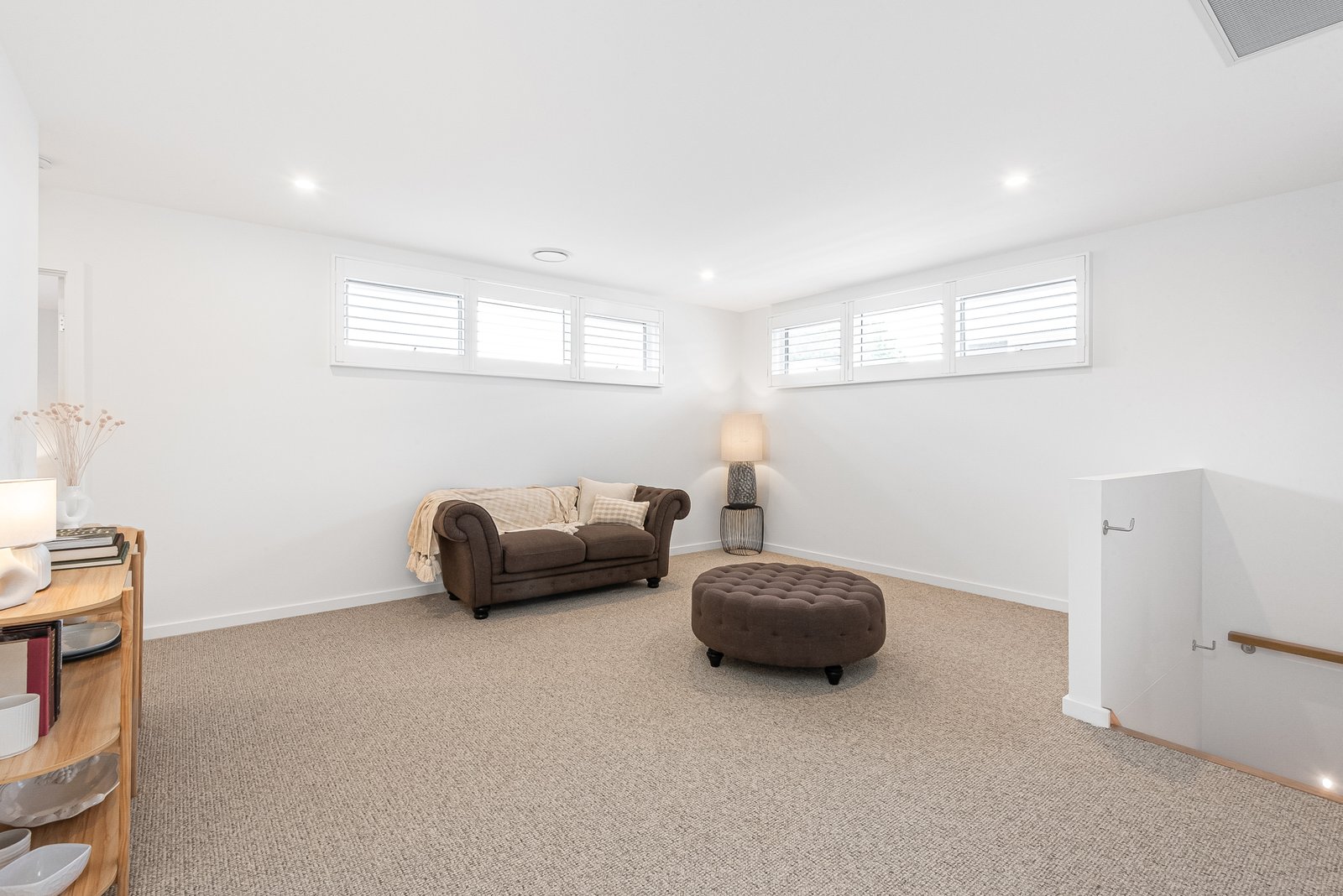 Upstairs Living: Generous second living area with plush carpeting.