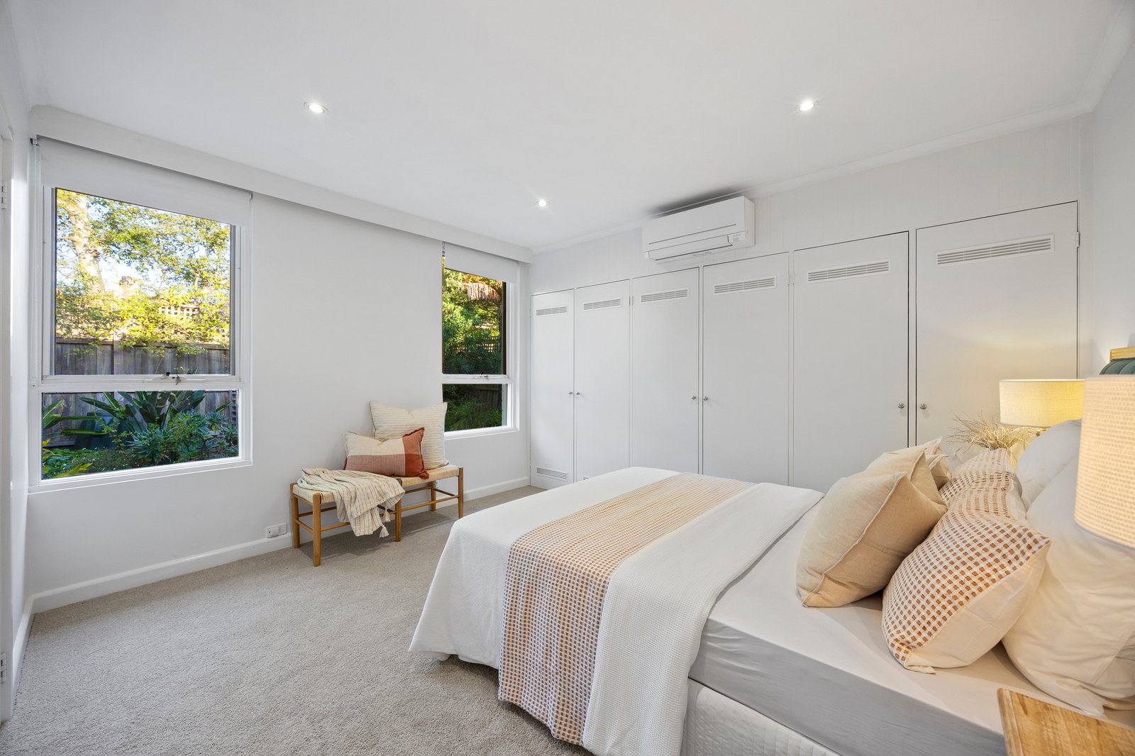Oriented to the north to maximise all-day across side-by-side formal and family zones opening to a sheltered terrace, this architectural design stretches across an easy-care single-level with a quiet bedroom wing stretching deep into the rear garden. Scaled up with oversized bedrooms providing abundant space to study, retreat or reconfigure, the home is styled up with classic bathrooms - one a large main with private WC, the other a private ensuite.