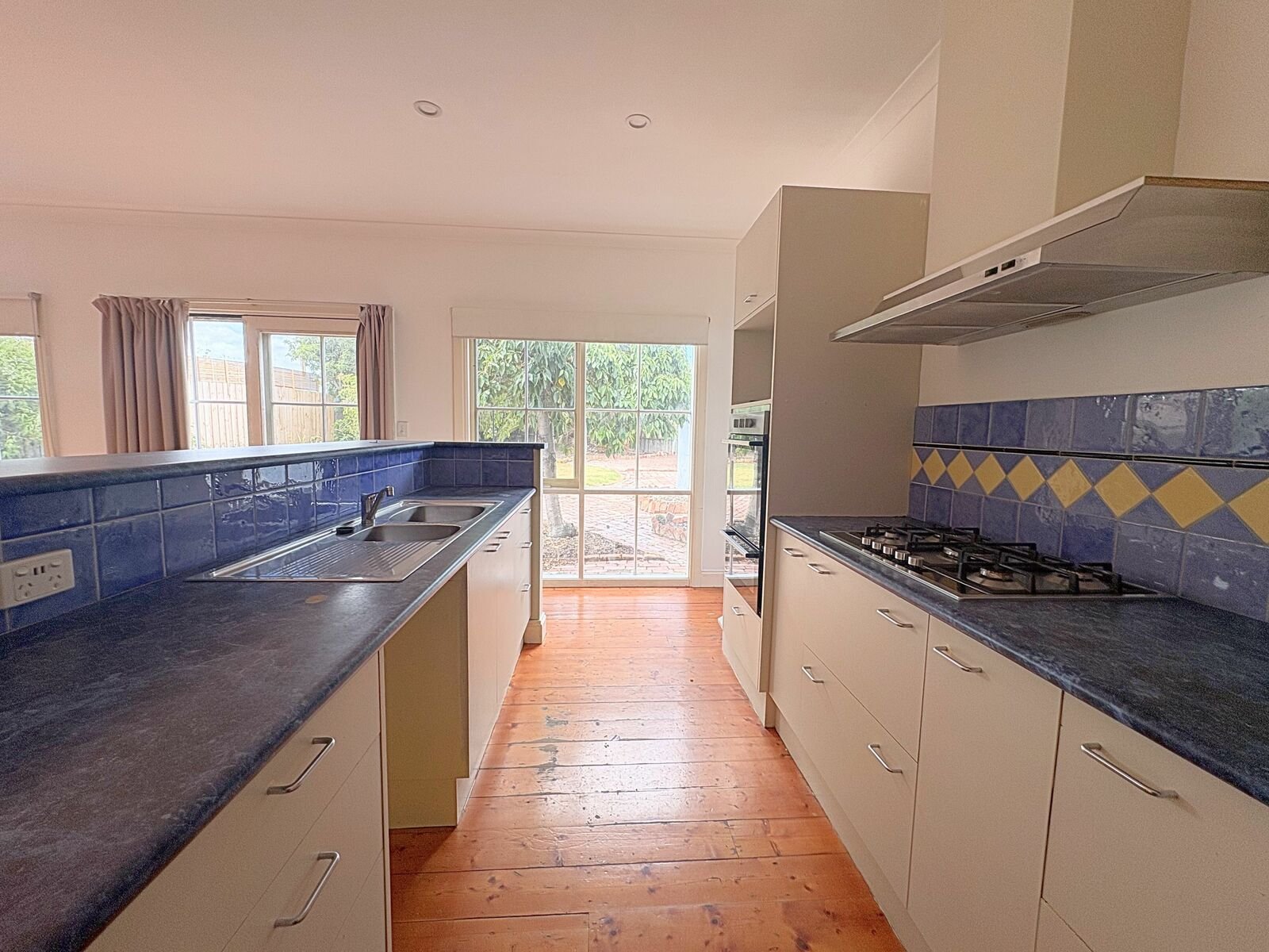 Outdoors, the large backyard provides plenty of space to relax or entertain, complete with lawn, established greenery, paved areas, and convenient rear access. A single garage adds secure parking and storage.