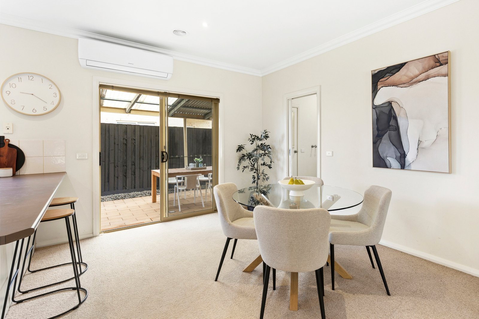 Year-round comfort is assured with ducted heating, ceiling fans and a split system for heating and cooling.