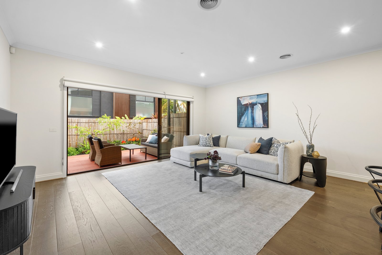 Behind delicate, low-maintenance gardens, this three bedroom, three bathroom residence introduces a life of calm and elegance, its northern rear drawing sunshine deep into the home and shaping a sense of light-filled serenity.