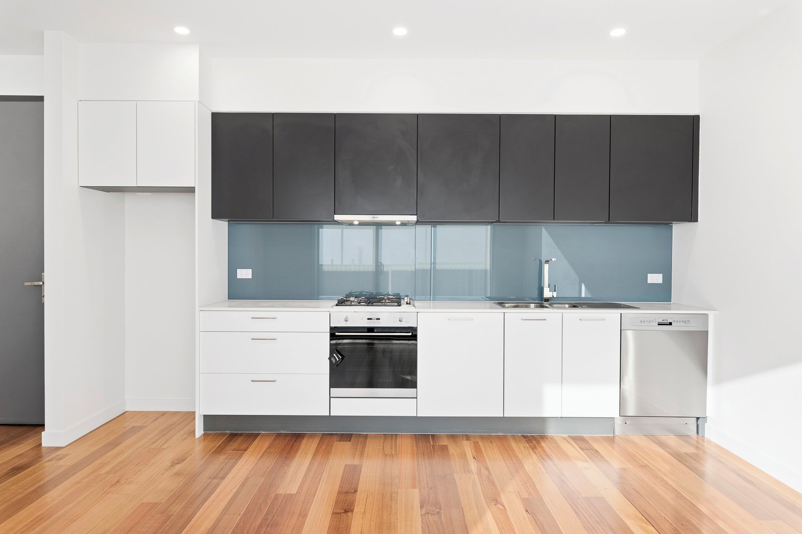 - Modern kitchen with designer detailed with sleek stone bench tops, quality Smeg appliances