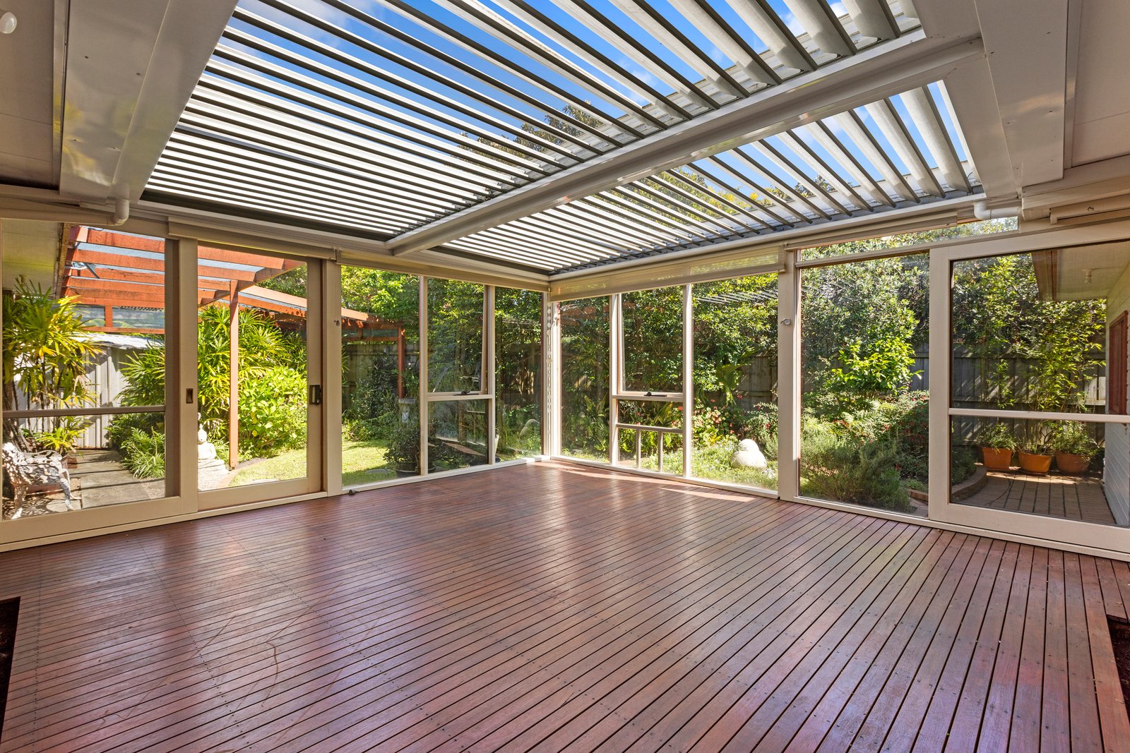 Beautifully landscaped gardens flow seamlessly from the home’s light-filled living areas, providing multiple outdoor zones to enjoy. Host a barbecue or unwind with afternoon tea in the wraparound alfresco with a louvre roof, or retreat to the private side yard for quiet relaxation.