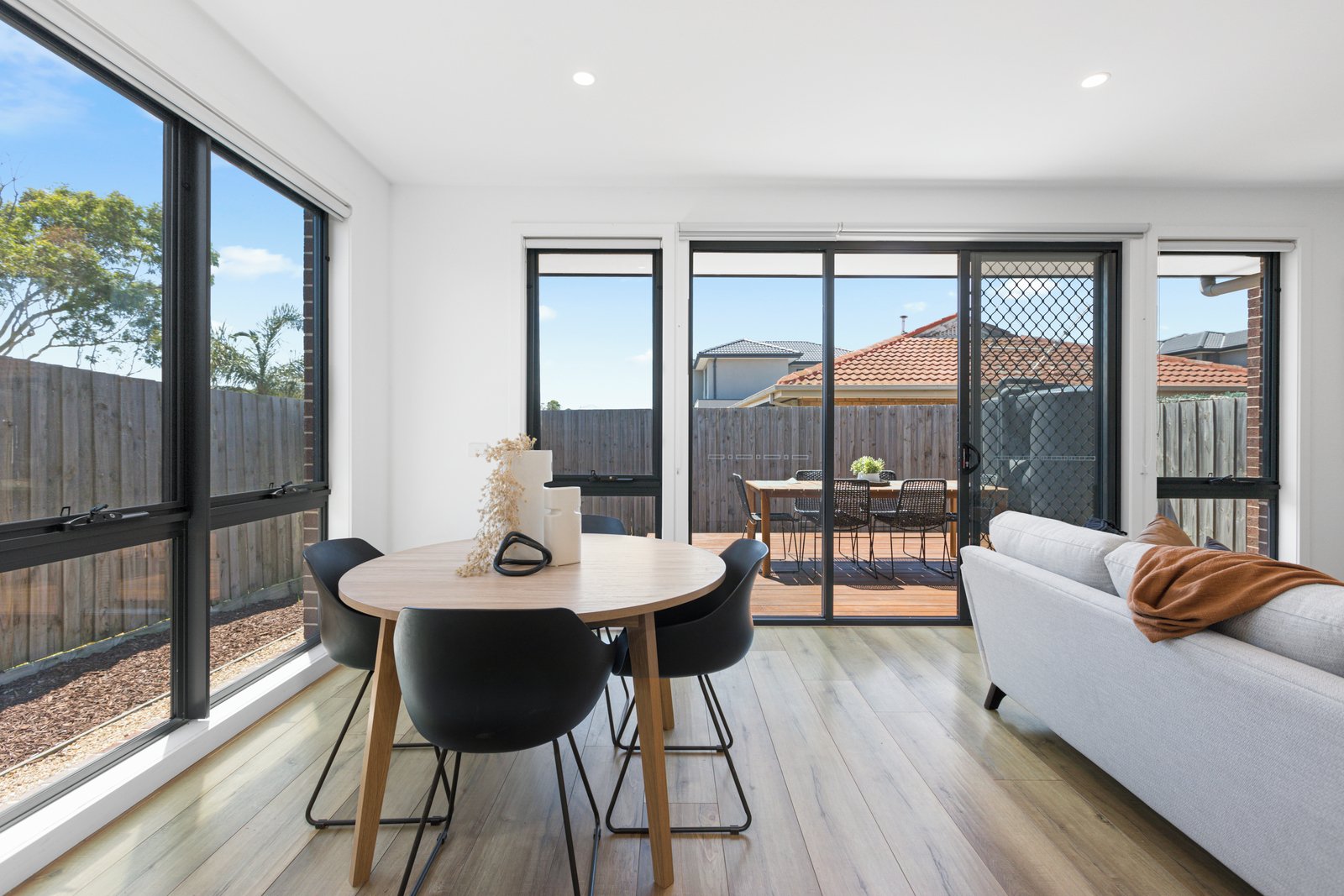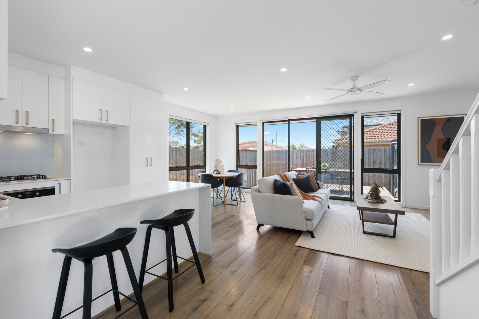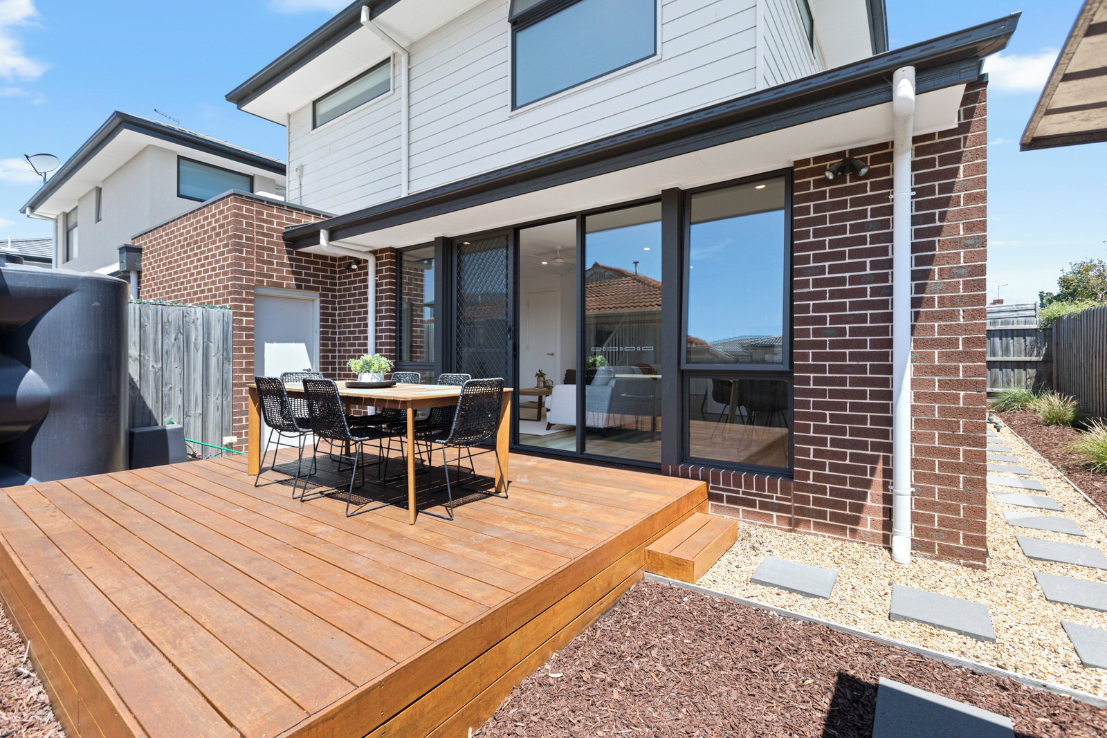 This near new, 2-3 bedroom townhouse is perfectly located, walking distance to the beach, station and shops with single remote garage and further off street parking. Comprising internally of an open plan living/dining area, kitchen with gas cooking, dishwasher and pantry cupboard, breakfast bar and doors opening to a low maintenance decked courtyard. Study or smaller 3rd bedroom downstairs, separate laundry, powder room and under stairs storage. Upstairs to 2 further well-sized bedrooms with built-in-robes and a central bathroom with bath. Extras including: Split system heating and cooling in each room, floorboards, roller blinds, ceiling fans, garden shed and remote garage.