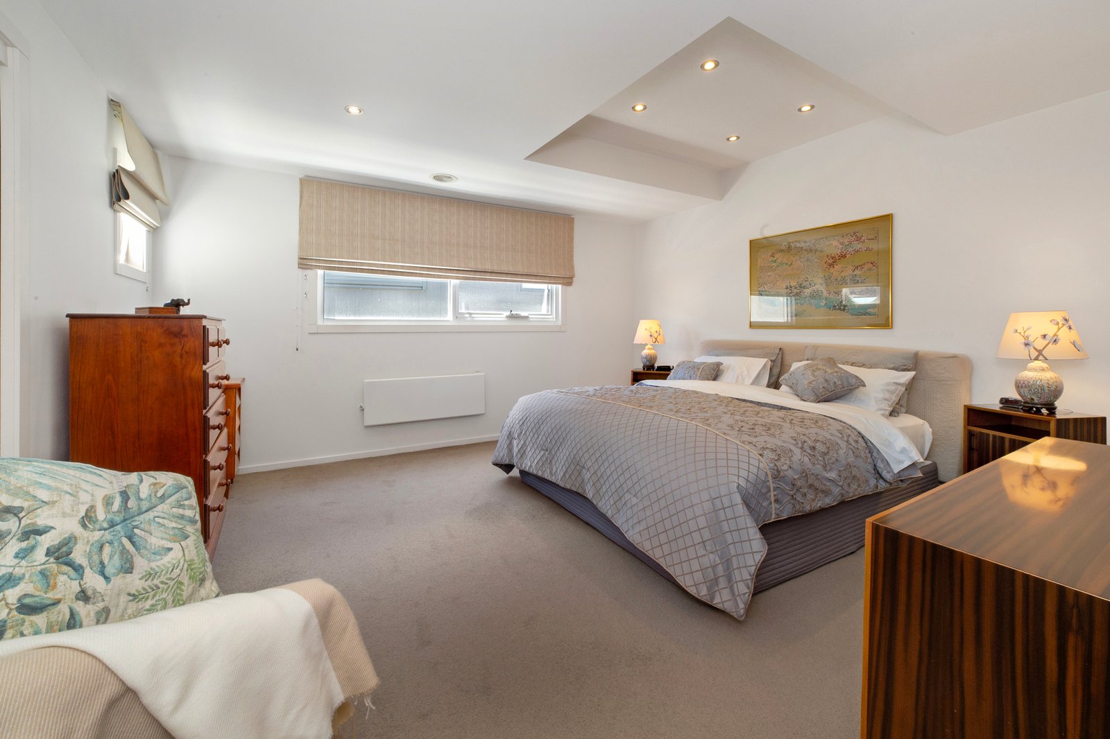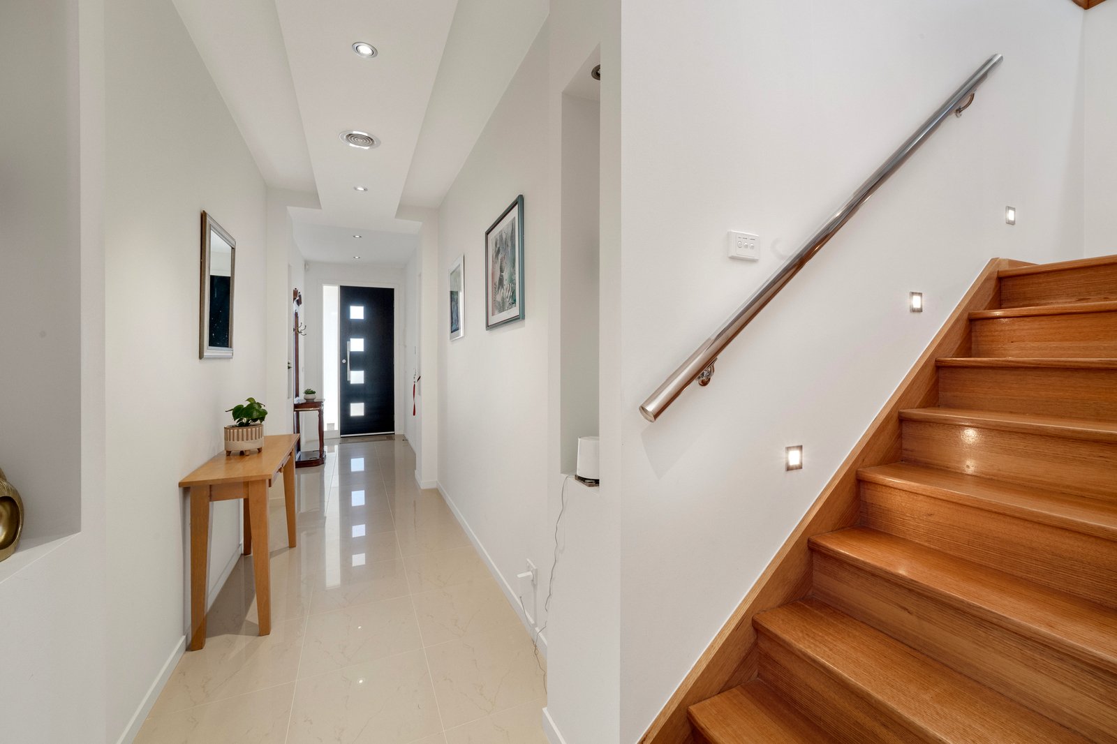 Year-round comfort is assured thanks to upstairs evaporative cooling, central heating, and an additional gas heater on the lower level. The home also boasts a spa bathroom, ducted vacuum across both floors, video intercom units upstairs and downstairs, newly painted decks, blinds throughout, and a brand-new hot water system. Clever additional storage is tucked neatly beneath the staircase.