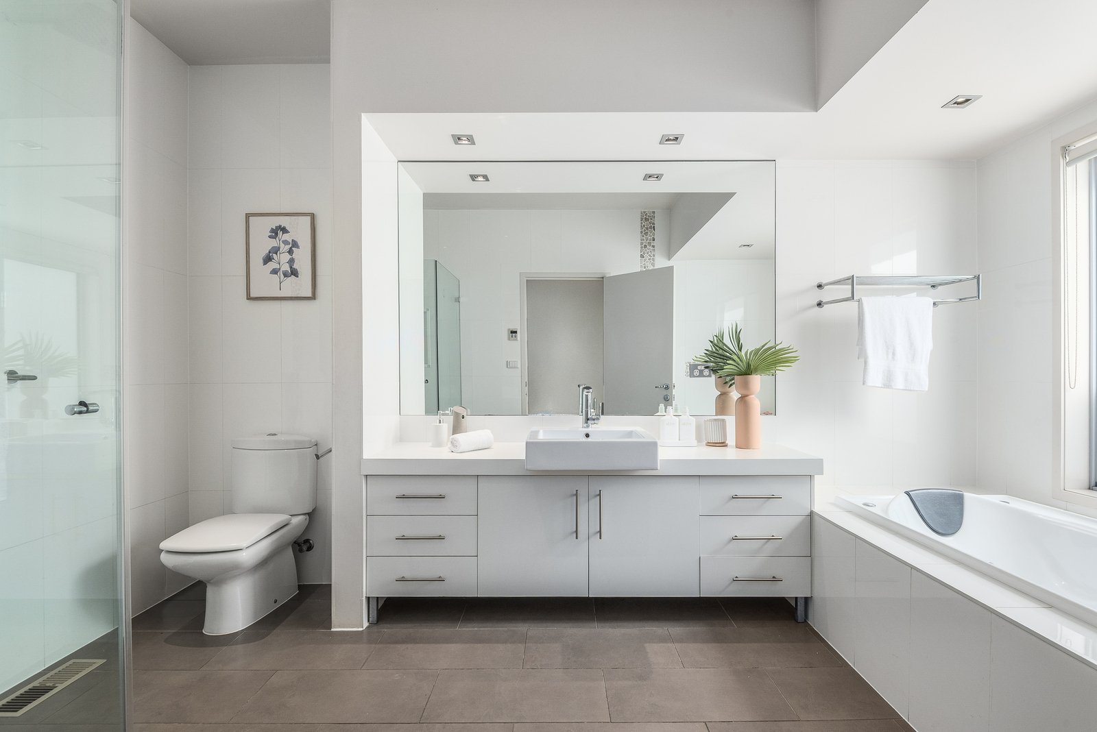 Comprising four bedrooms, the luxurious main suite is expansive in size, with dual walk-in robes, and a tastefully presented ensuite finished in floor to ceiling tiles, with frameless glass double shower. Two further bedrooms on the upper level include built-in robes, serviced by a spacious main bathroom with spa bath, separate shower and modern vanity. The fourth bedroom is privately positioned downstairs, accompanied by a fully equipped kitchen with high end appliances, a dining space and third bathroom, providing a self-contained area for a guest zone, teenager’s retreat, or multi-generational living.
