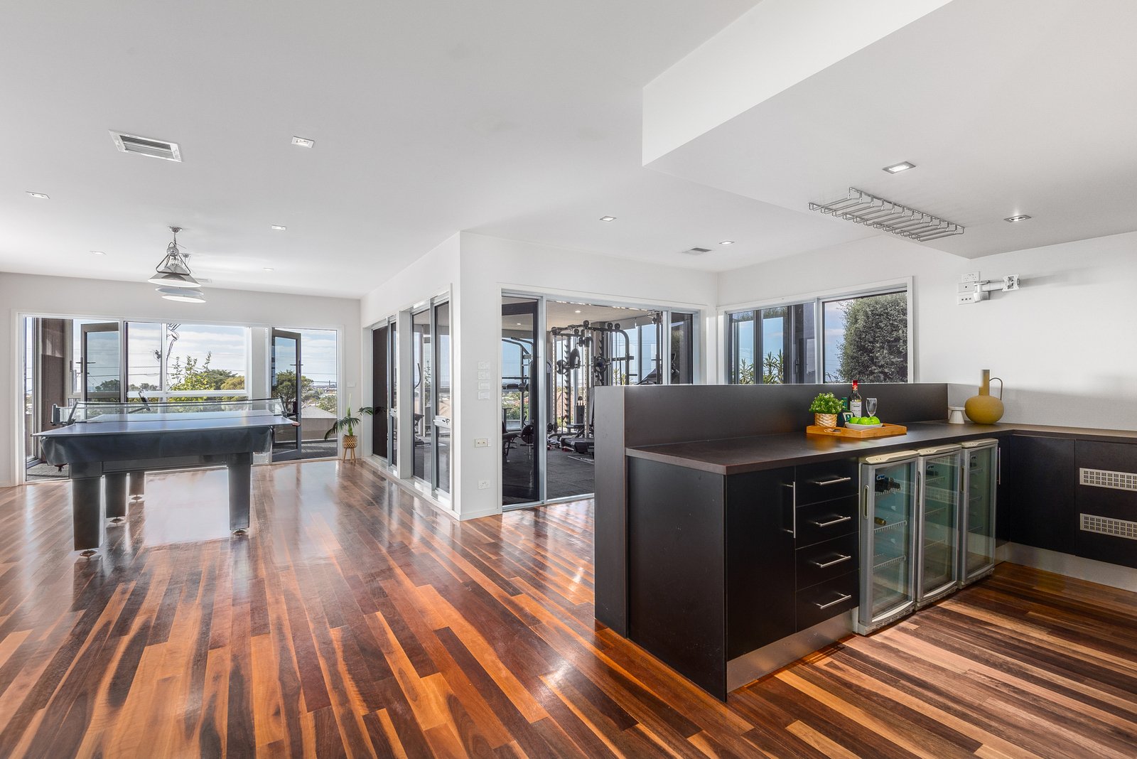 A central staircase forms a striking focal point of the home, bathed in north‑facing natural light as it leads you down to the spacious second living area. Built‑in bar facilities make this a fantastic space to host family and friends, while an adjoining multi‑purpose room offers versatile use as a gymnasium or rumpus room, all while enjoying those amazing views.
