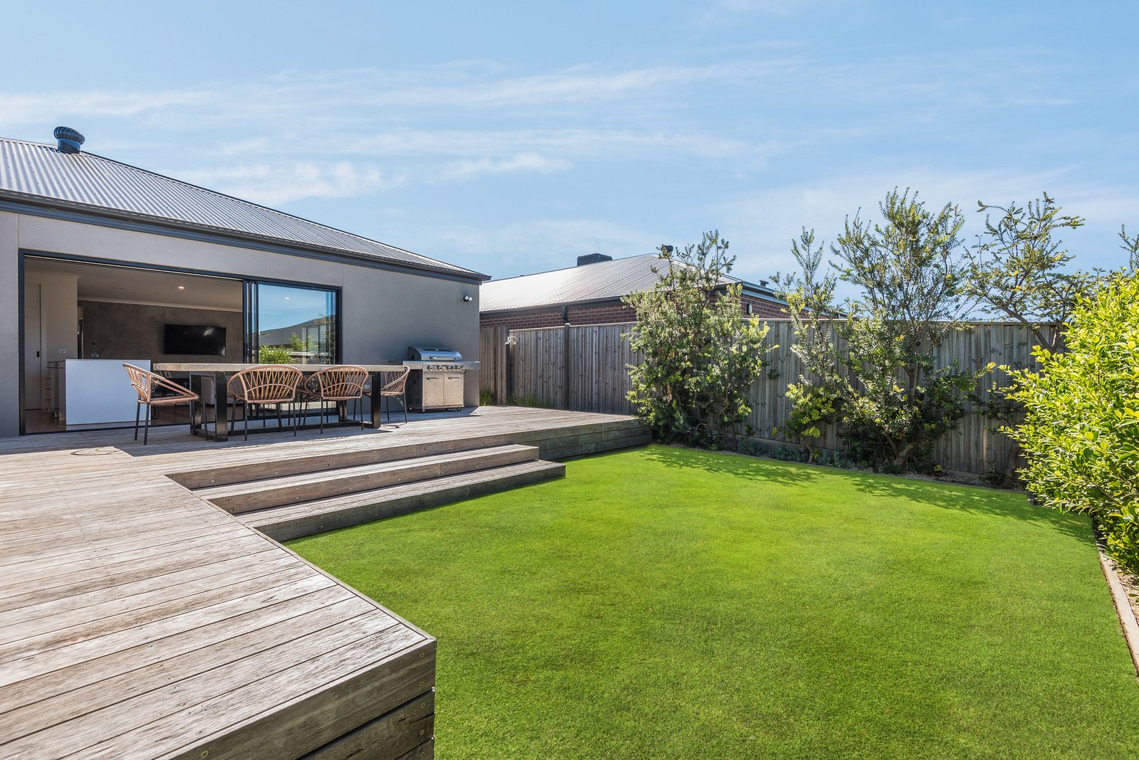Outside, the entertaining deck offers the perfect space to relax in the sun or entertain. The secure backyard provides a lush lawn area for the kids or pets to play, bordered by beautifully maintained gardens creating a tranquil environment. The double remote garage includes direct internal entry for secure and convenient access to the home, and driveway space accommodates additional off-street parking.