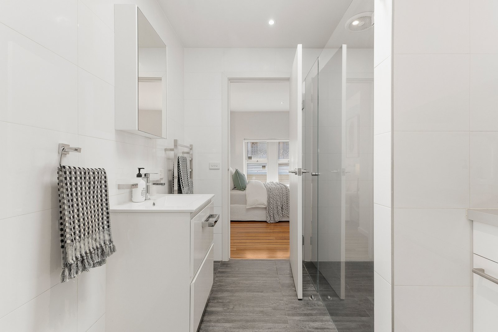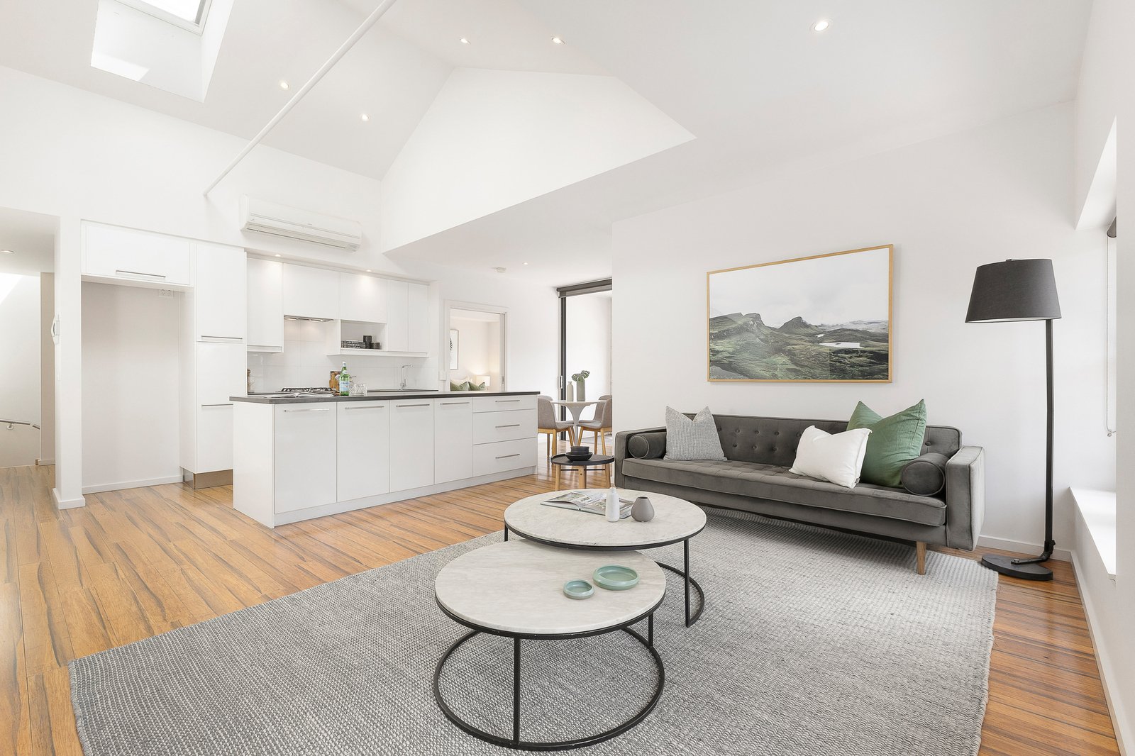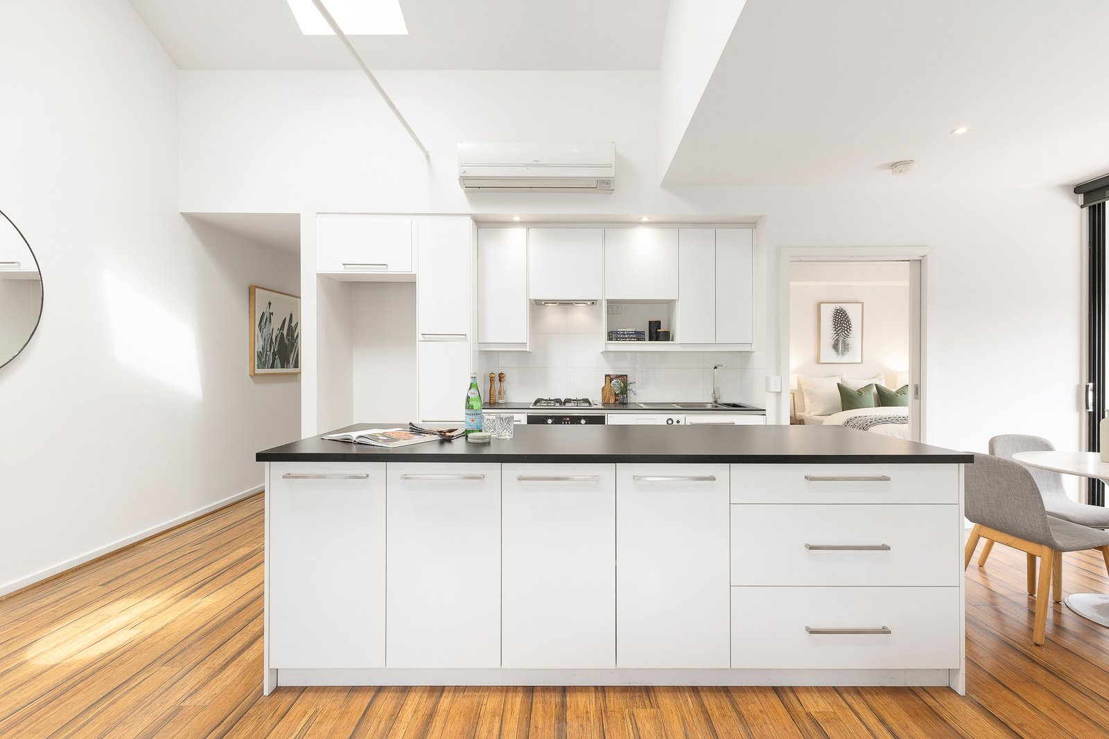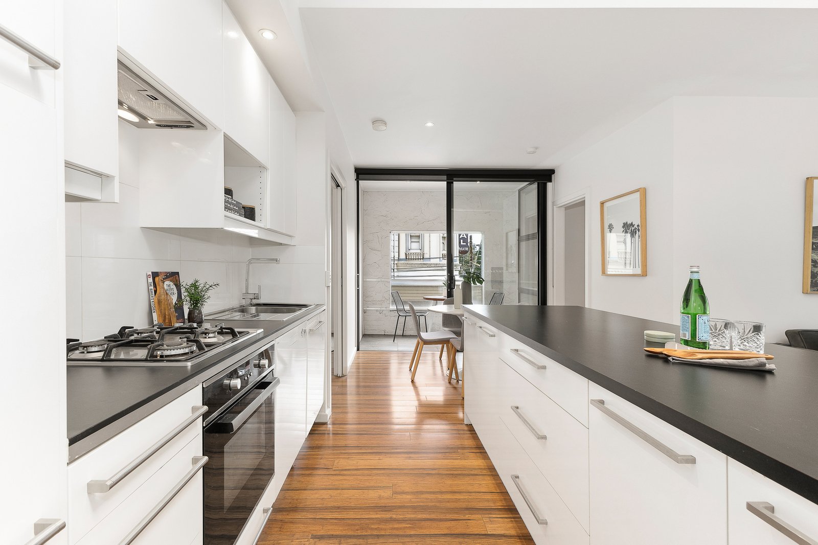 Positioned on one of St Kilda’s most vibrant streets, this contemporary shop-top apartment combines modern style with unbeatable convenience. Filled with natural light, the open-plan living area features vaulted ceilings and flows seamlessly into a large, sleek kitchen with modern appliances and an adjoining meals area.