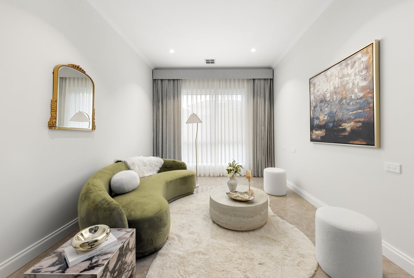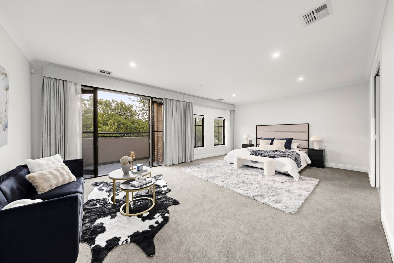 The ground-floor suite offers privacy and convenience, complemented by generous storage and a discreet retreat. Upstairs, an expansive family living area provides a cozy space for connection. Four additional bedrooms are designed as private suites, each with a walk-in robe and designer ensuite. The master suite is a sanctuary, featuring a lavish ensuite, expansive dressing area, and a dedicated home office.