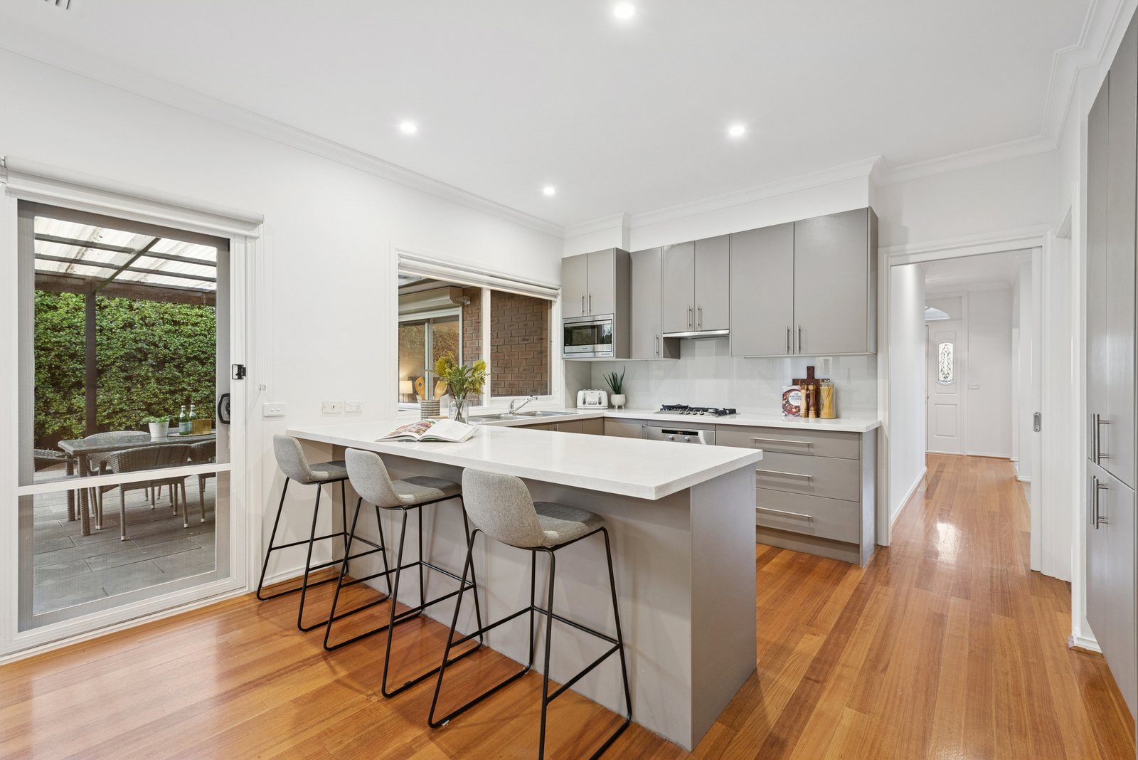 With an elite Miele appliance kitchen to add a prestige edge to entertaining and stylish bathrooms (including an elegant skylit ensuite) to add to the easy living, this high-quality home even offers flexible work-life balance with a central dining area designed to double as a home-office ... or perhaps even convert as a fourth bedroom!