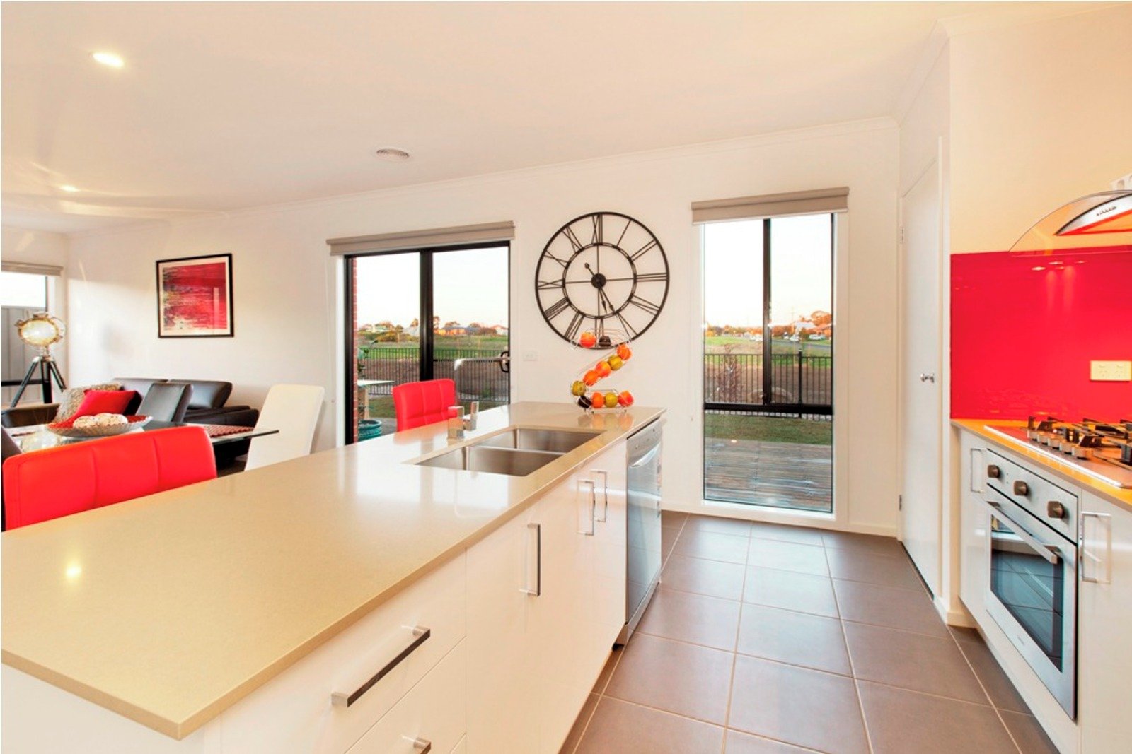 - Large open plan kitchen and dining area.