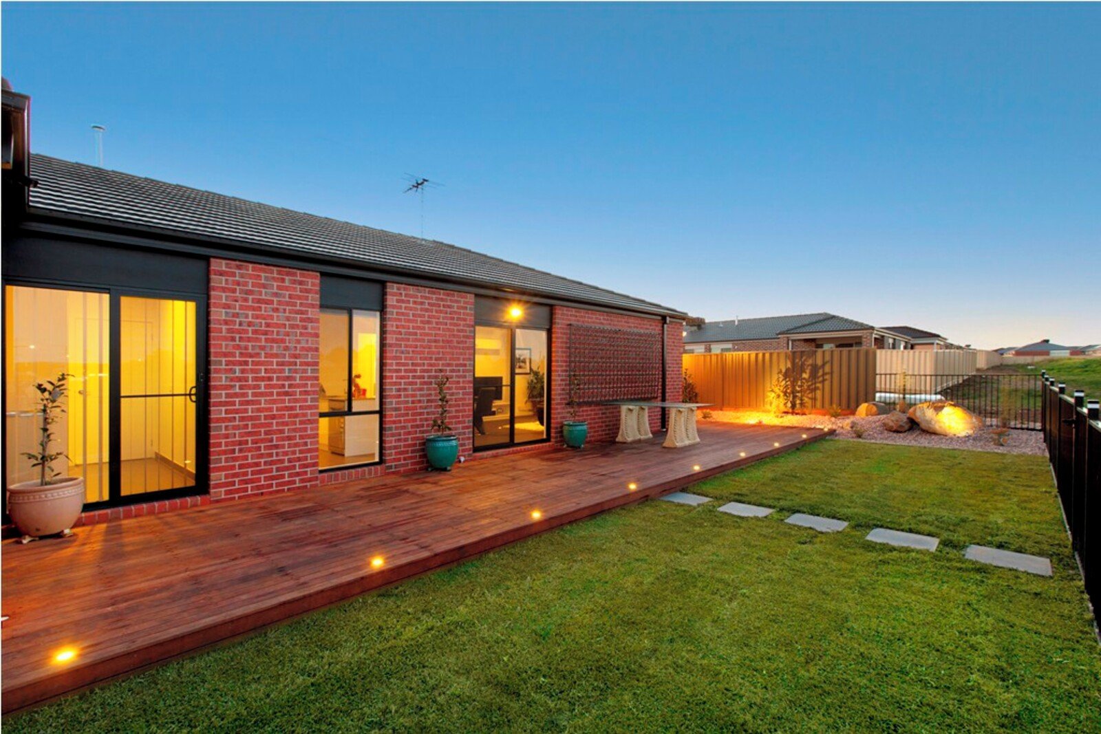- From the kitchen and dining area, large sliding doors open out to an large outdoor decked area, this decking area is to be modified.