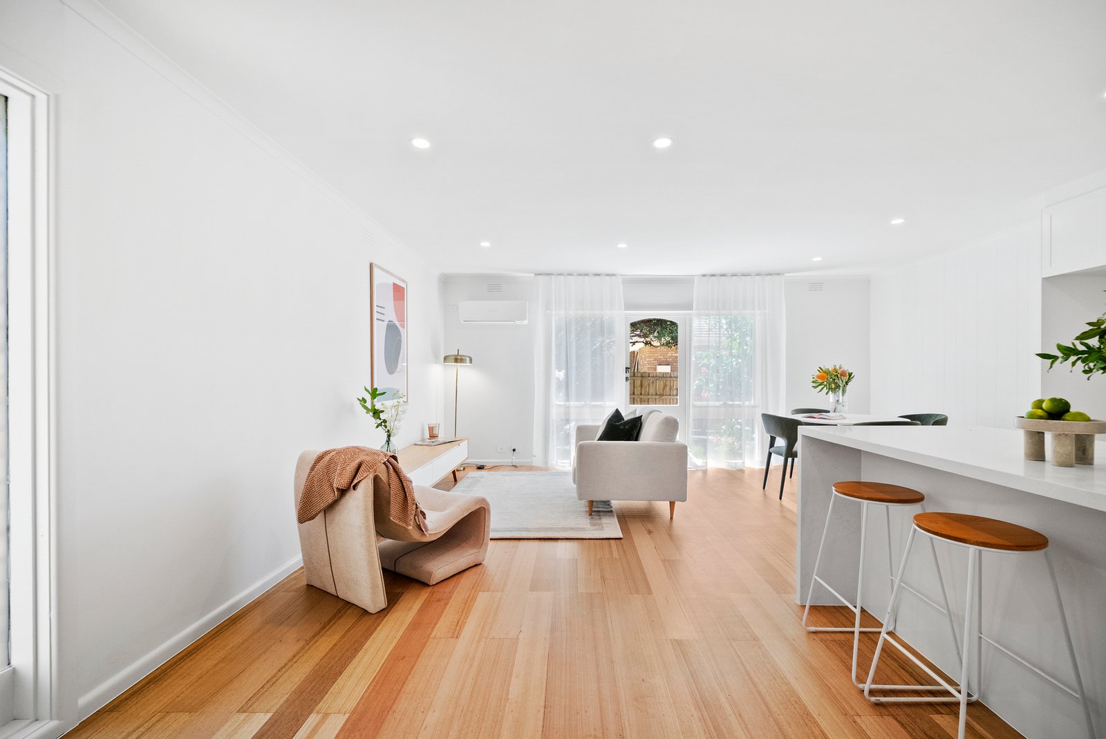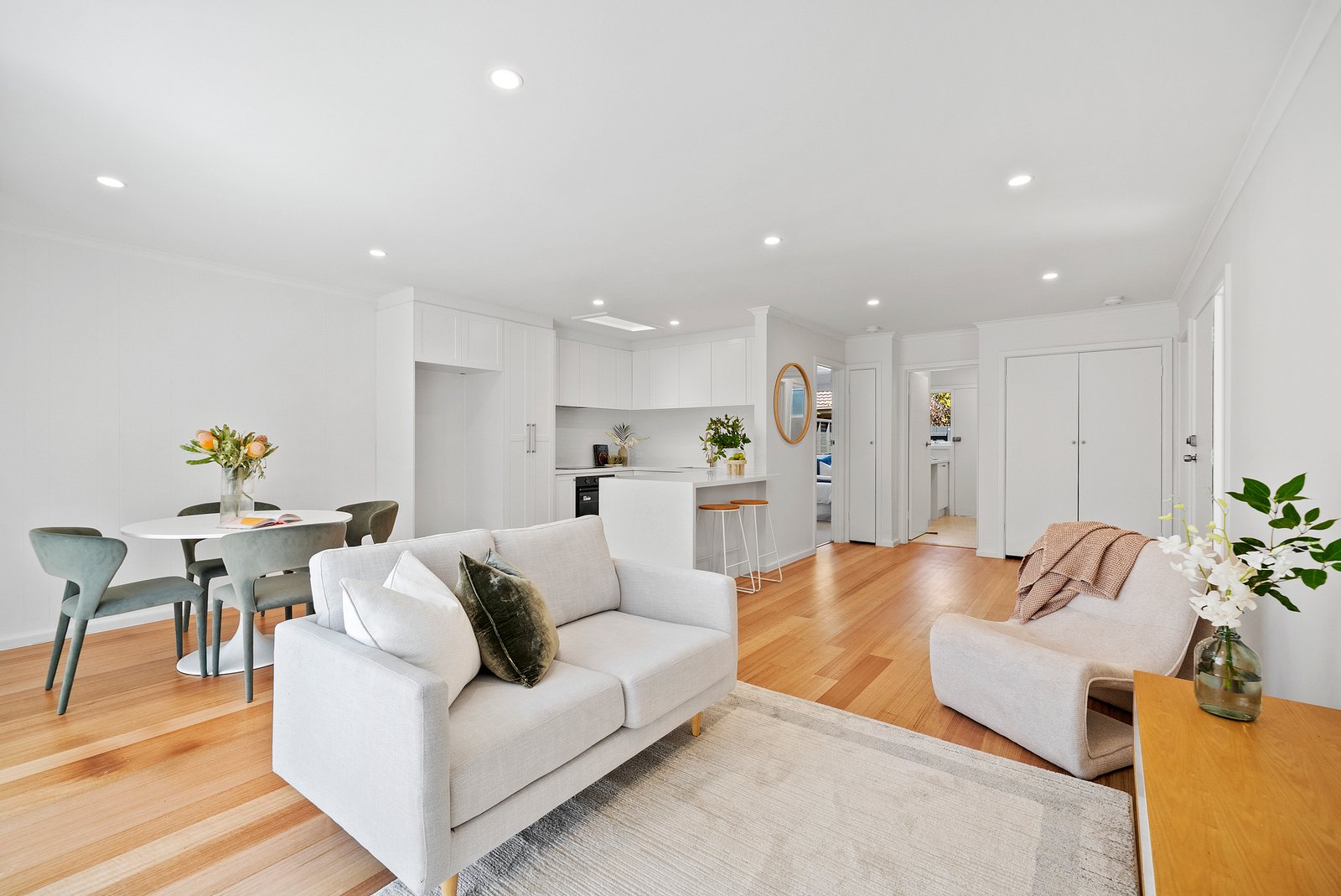 Complemented by a sought-after address within walking distance of the village and beach, the single-level abode boasts exceptionally inviting interiors that are open plan in layout and enhanced by a fabulous raft of features such as freshly polished floors, soft sheer curtains, premium carpets and a new kitchen and bathroom.