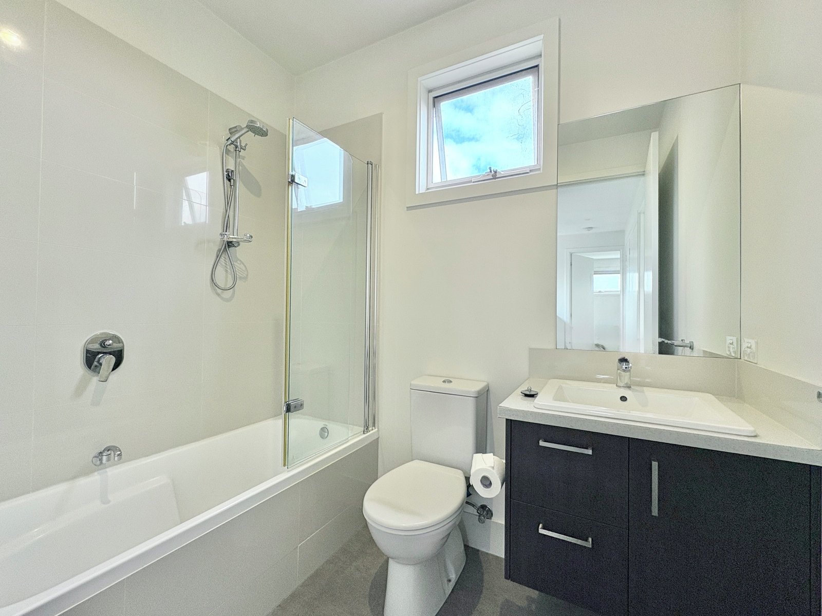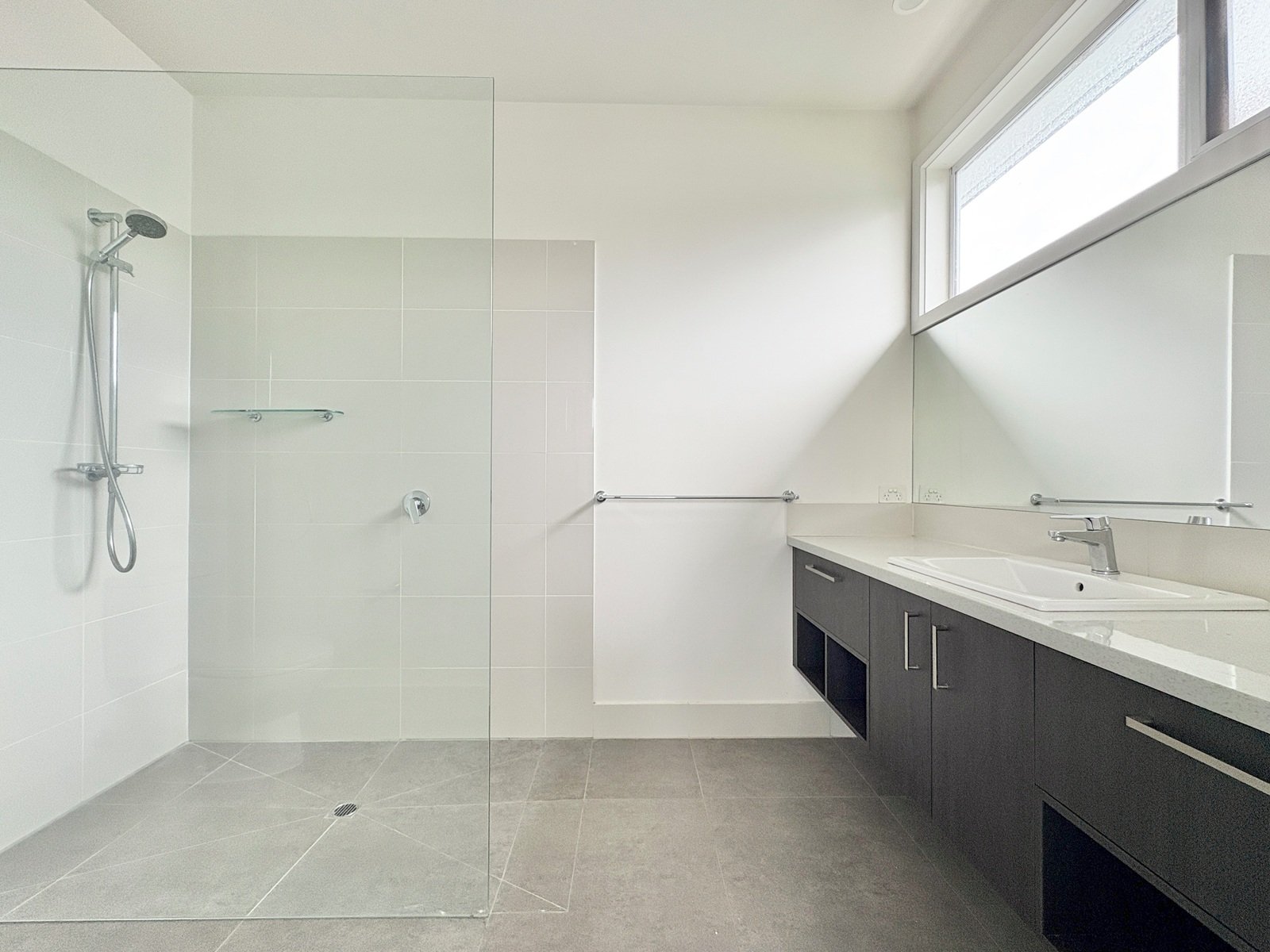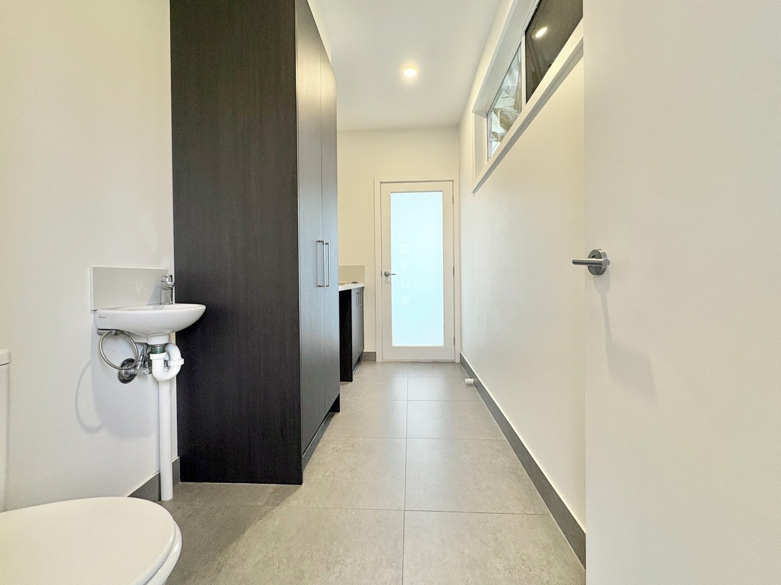 - Spacious laundry with toilet, vanity and external access